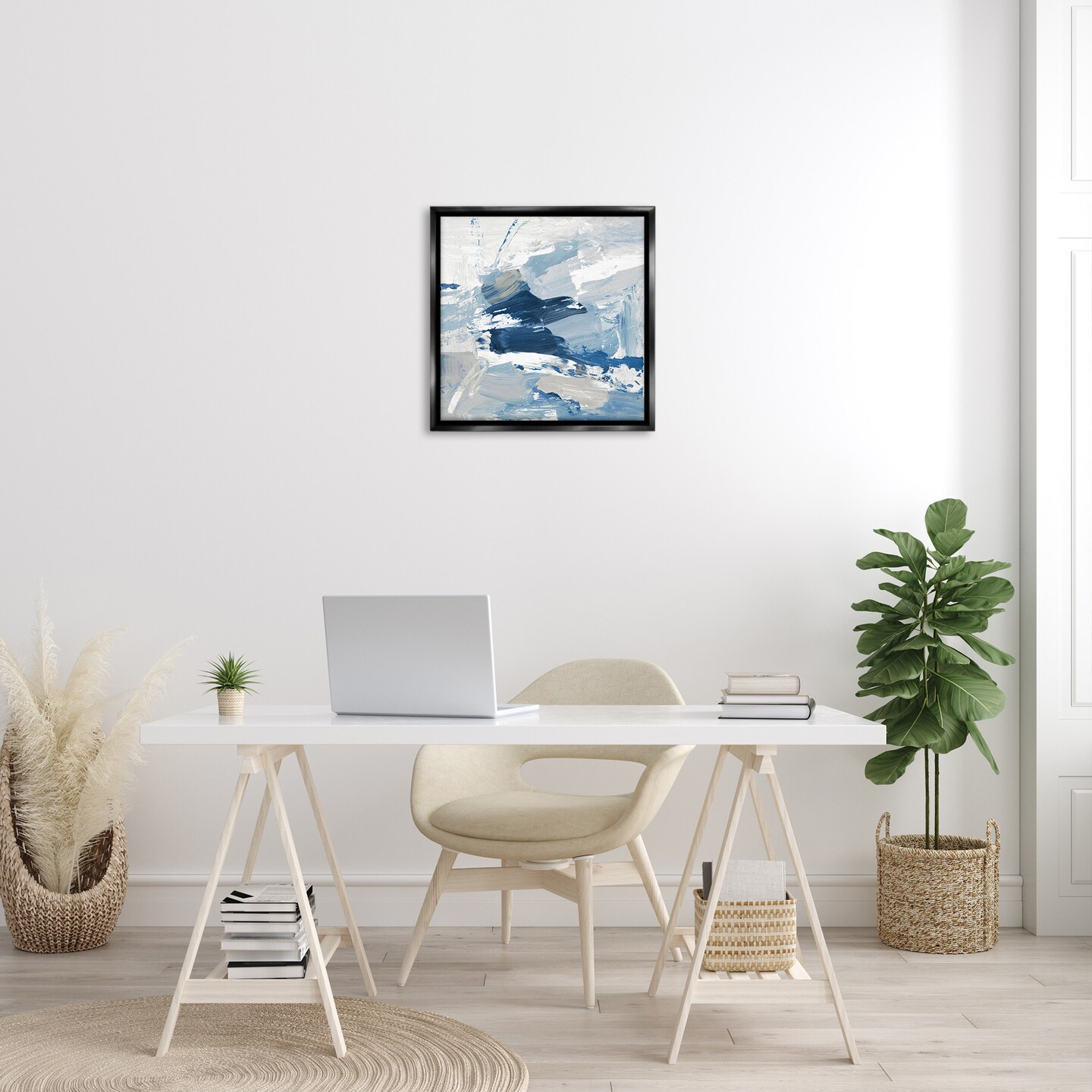 Stupell Industries Abstract Brushed Blue Painting Framed Floater Canvas Wall Art