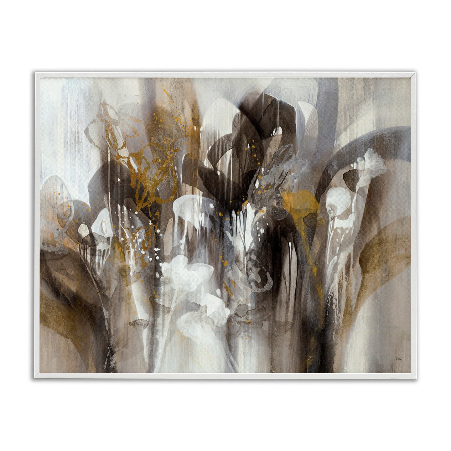 Stupell Industries Abstract Cascading Shapes Modern Brown White Black Painting Framed Giclee Design By K. Nari