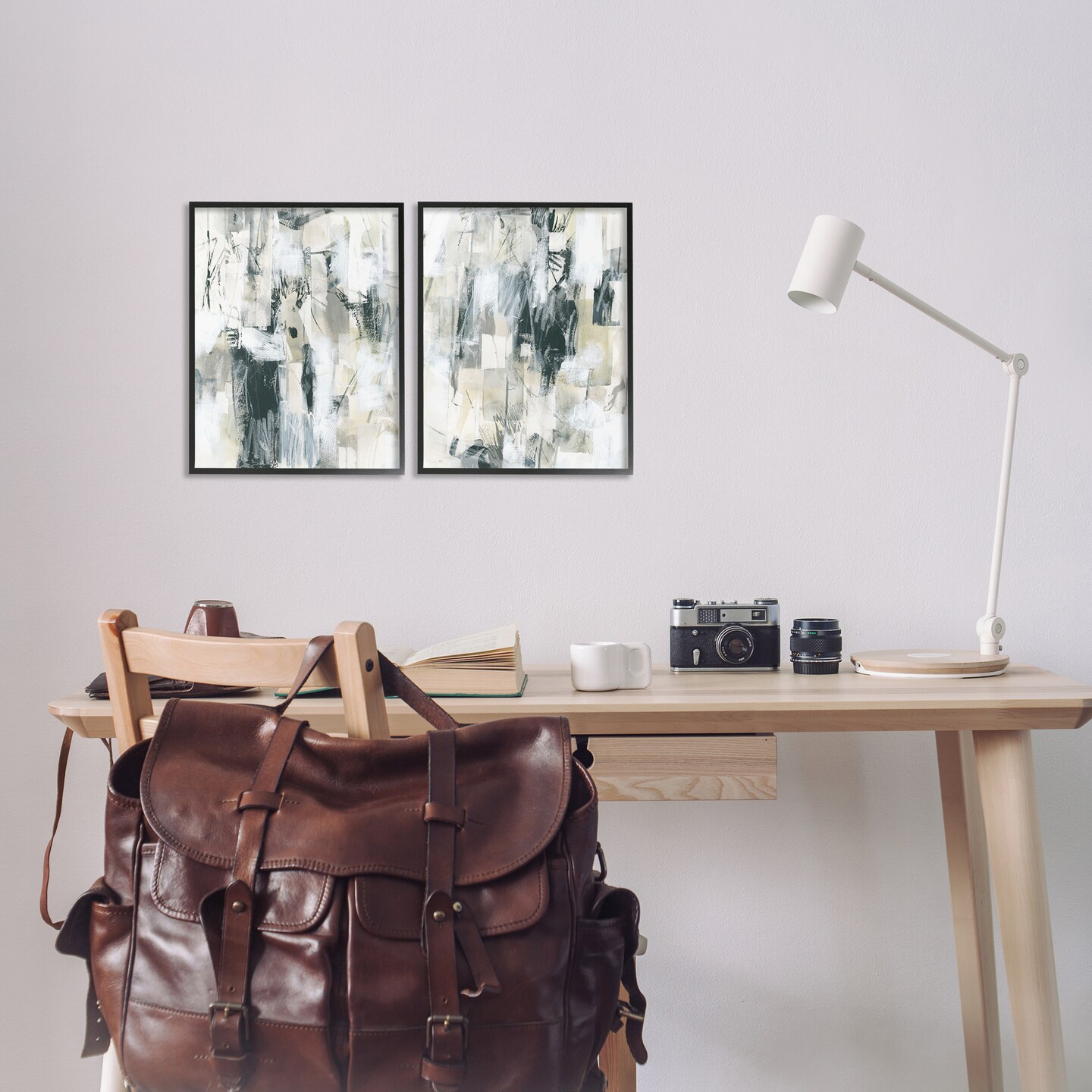 Stupell Industries Abstract Charcoal and Beige 2 pc Framed Giclee Wall Art Set Design by June Erica Vess