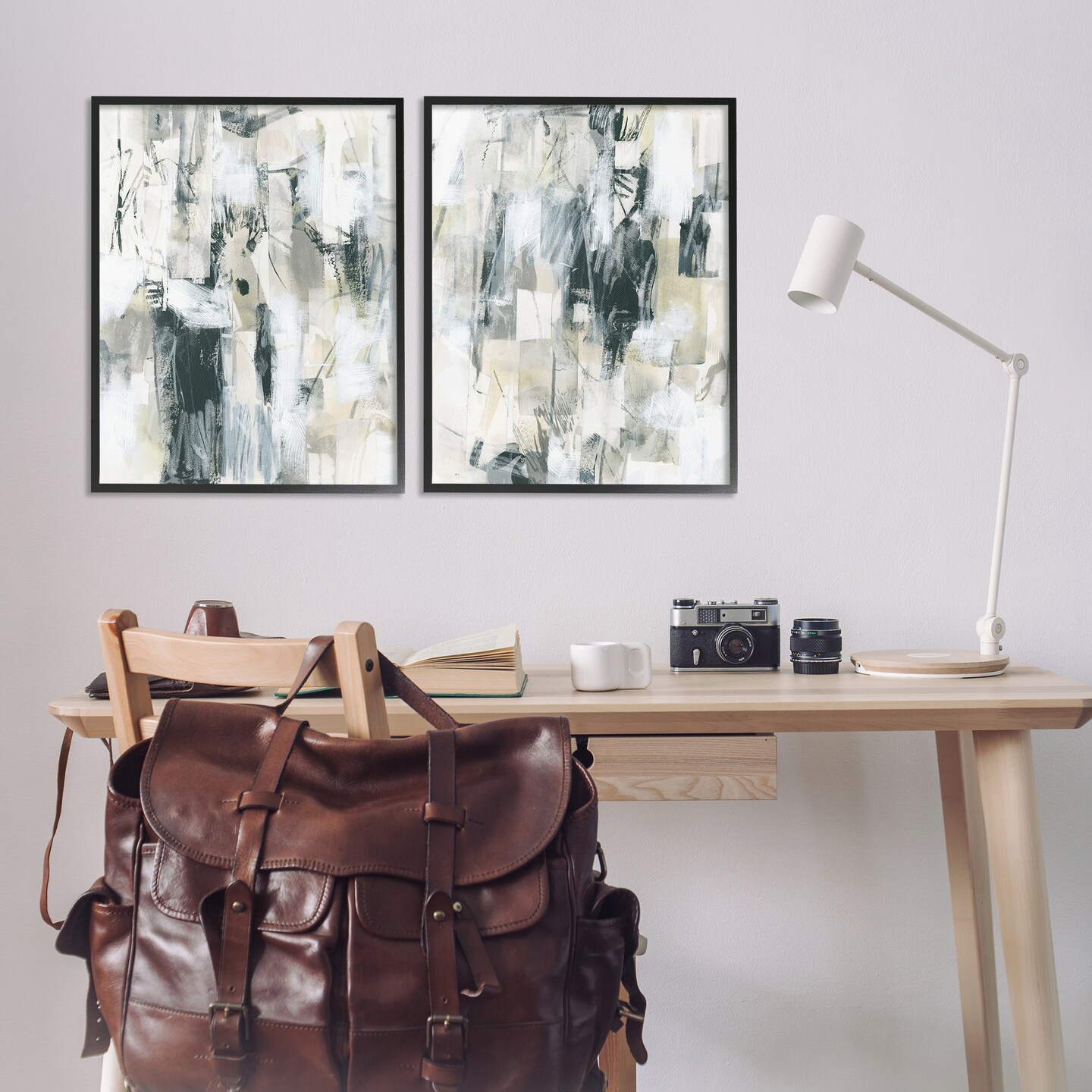 Stupell Industries Abstract Charcoal and Beige 2 pc Framed Giclee Wall Art Set Design by June Erica Vess