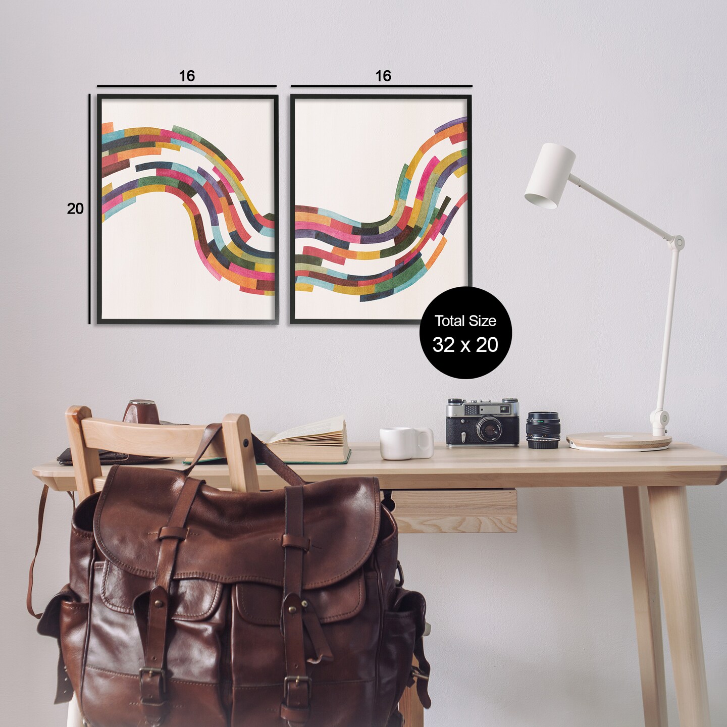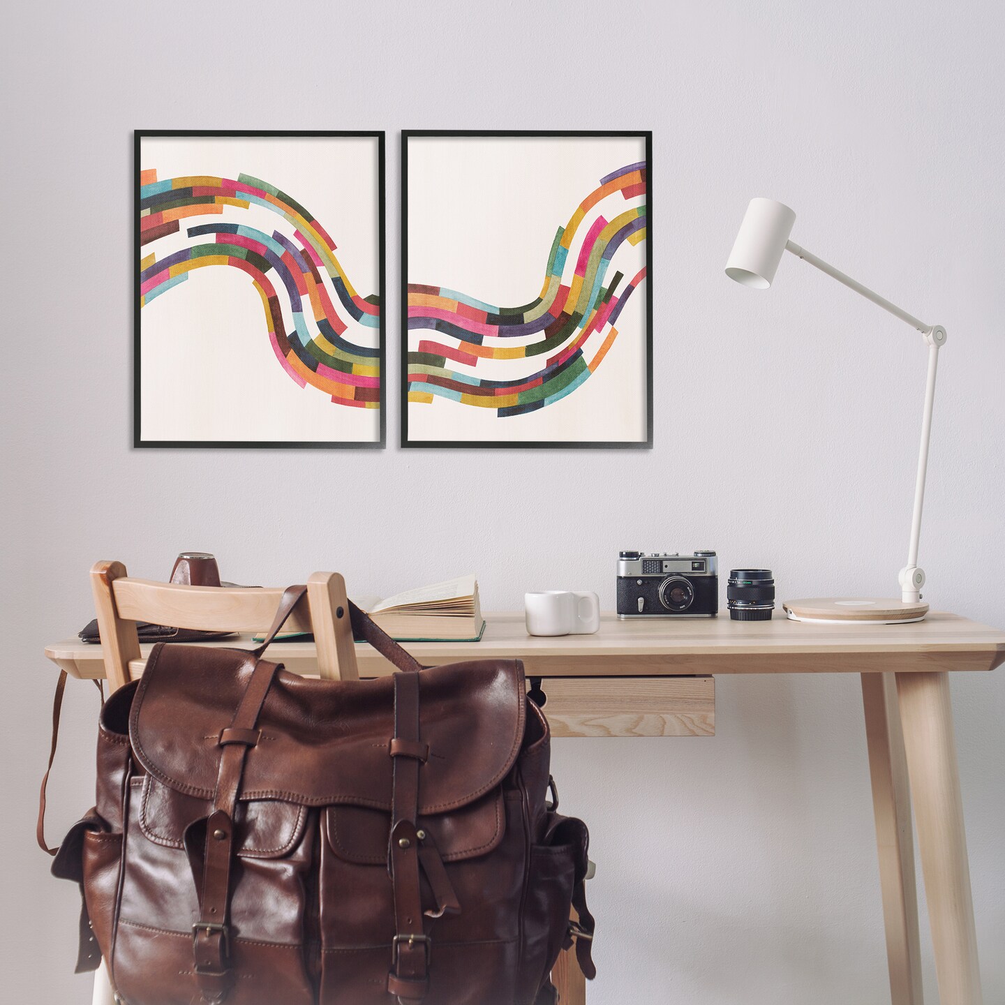 Stupell Industries Abstract Colorful Wave 2 pc Framed Giclee Wall Art Set Design by Grace Popp
