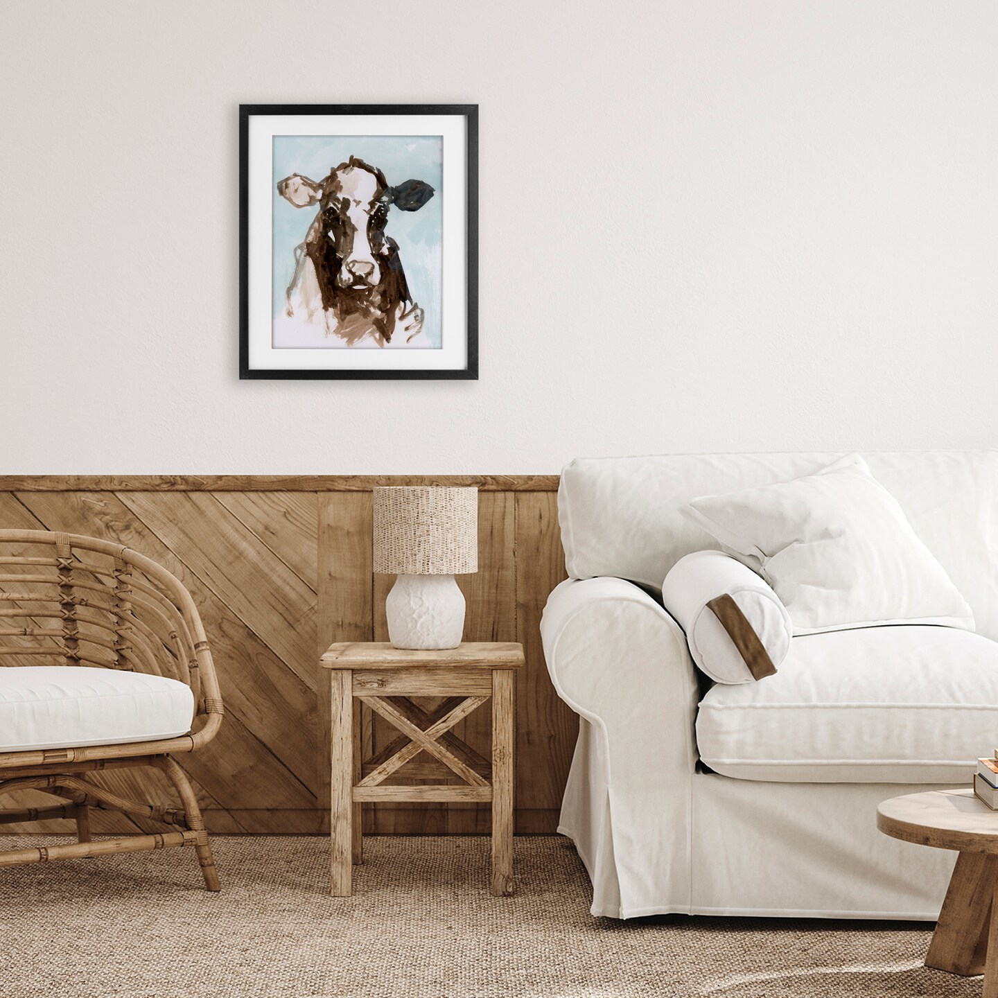 Stupell Industries Abstract Cow on Blue Framed Print Under Glass, design by casa cartissi