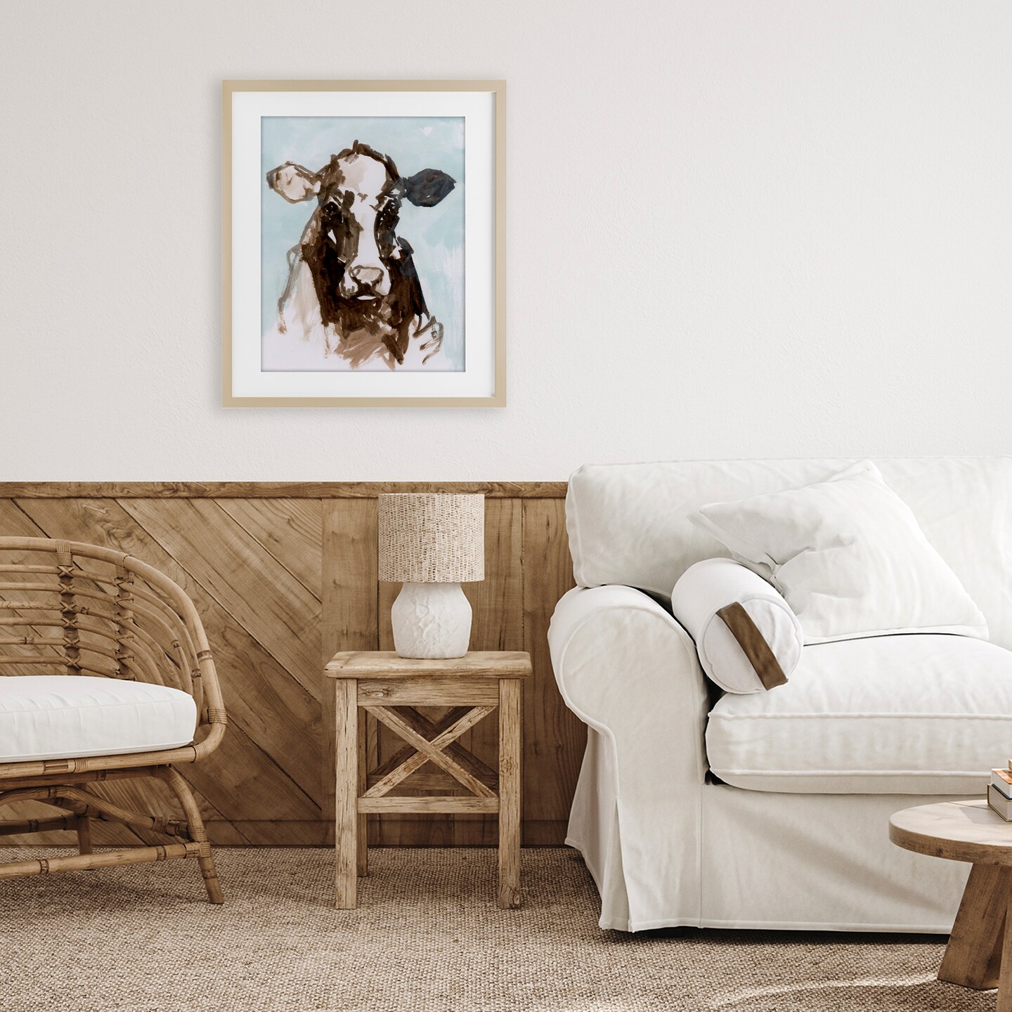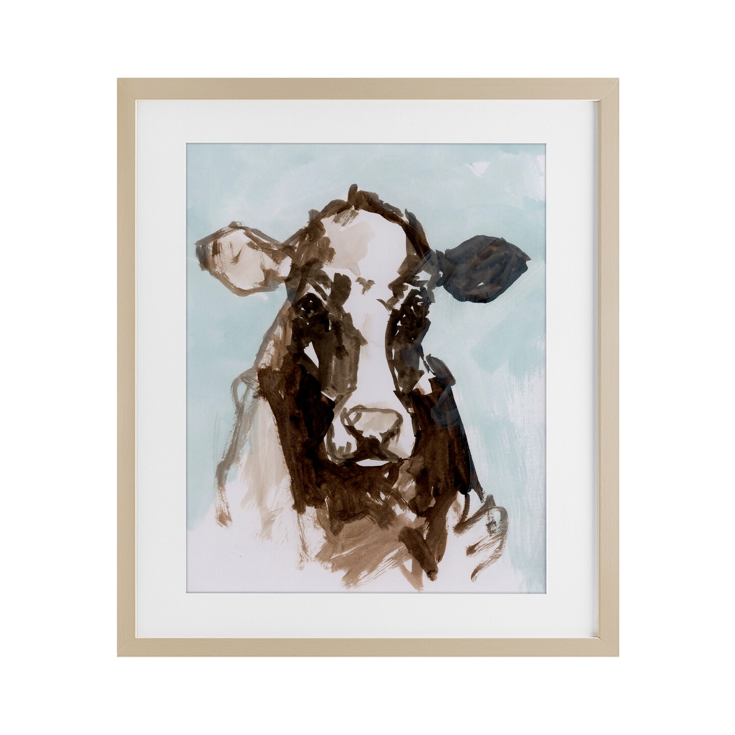 Stupell Industries Abstract Cow on Blue Framed Print Under Glass, design by casa cartissi