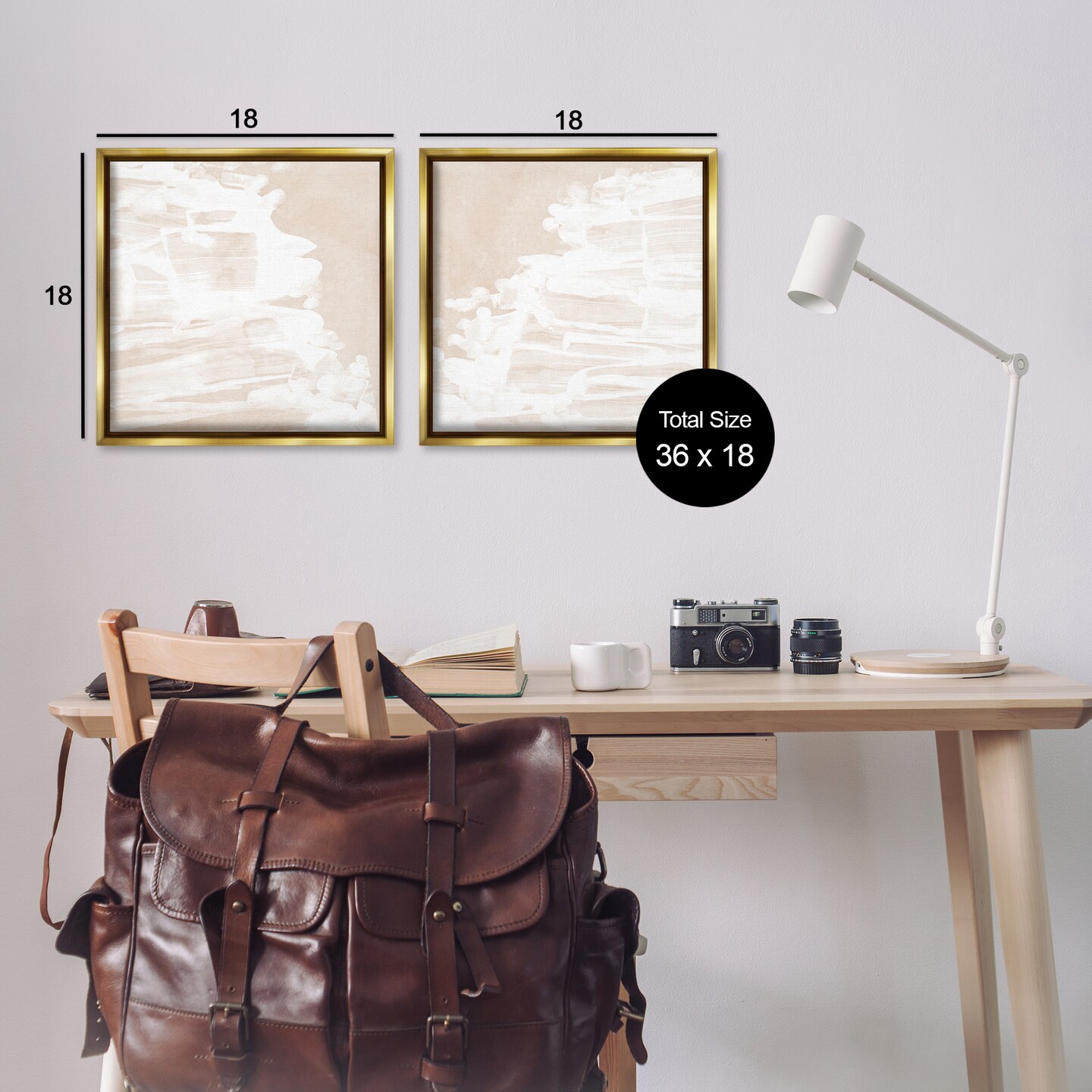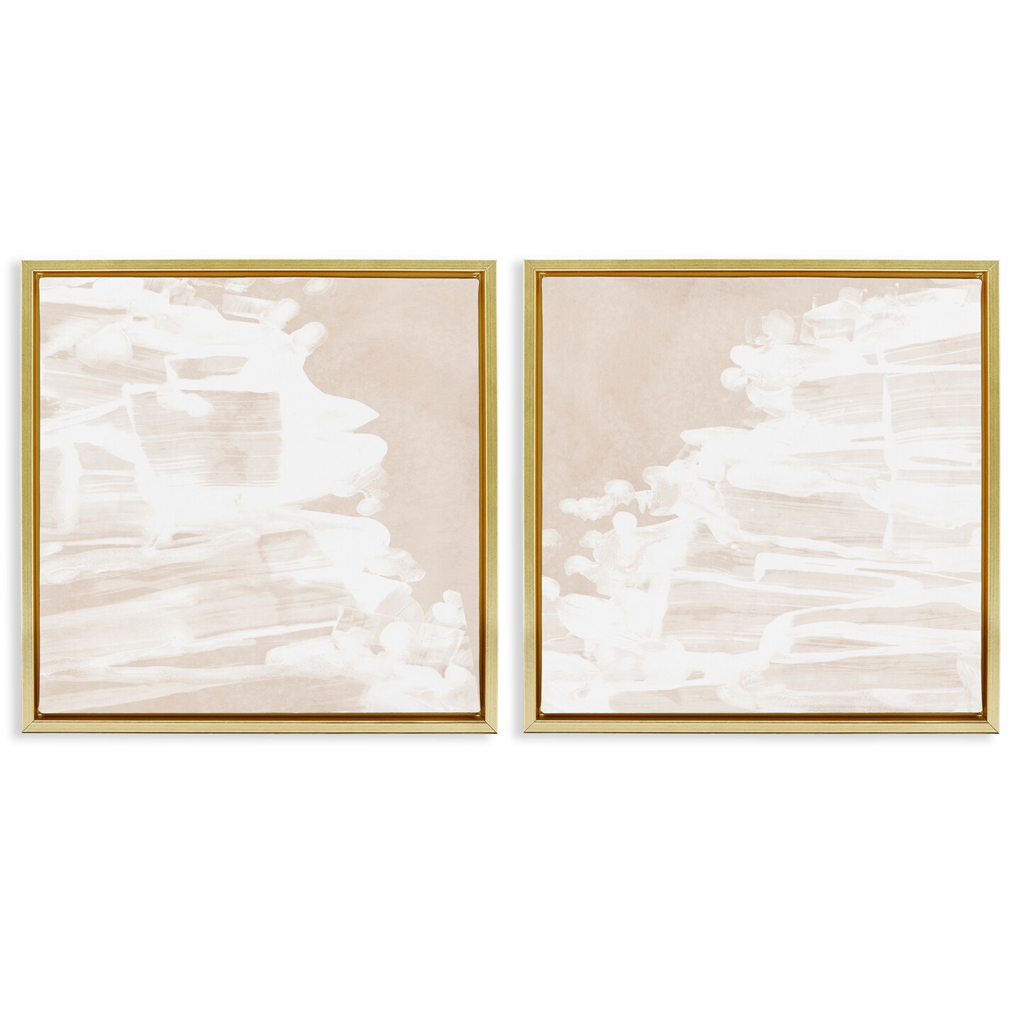 Stupell Industries Abstract Cream Layered Strokes 2 pc Framed Floater Canvas Wall Art Set Design by June Erica Vess