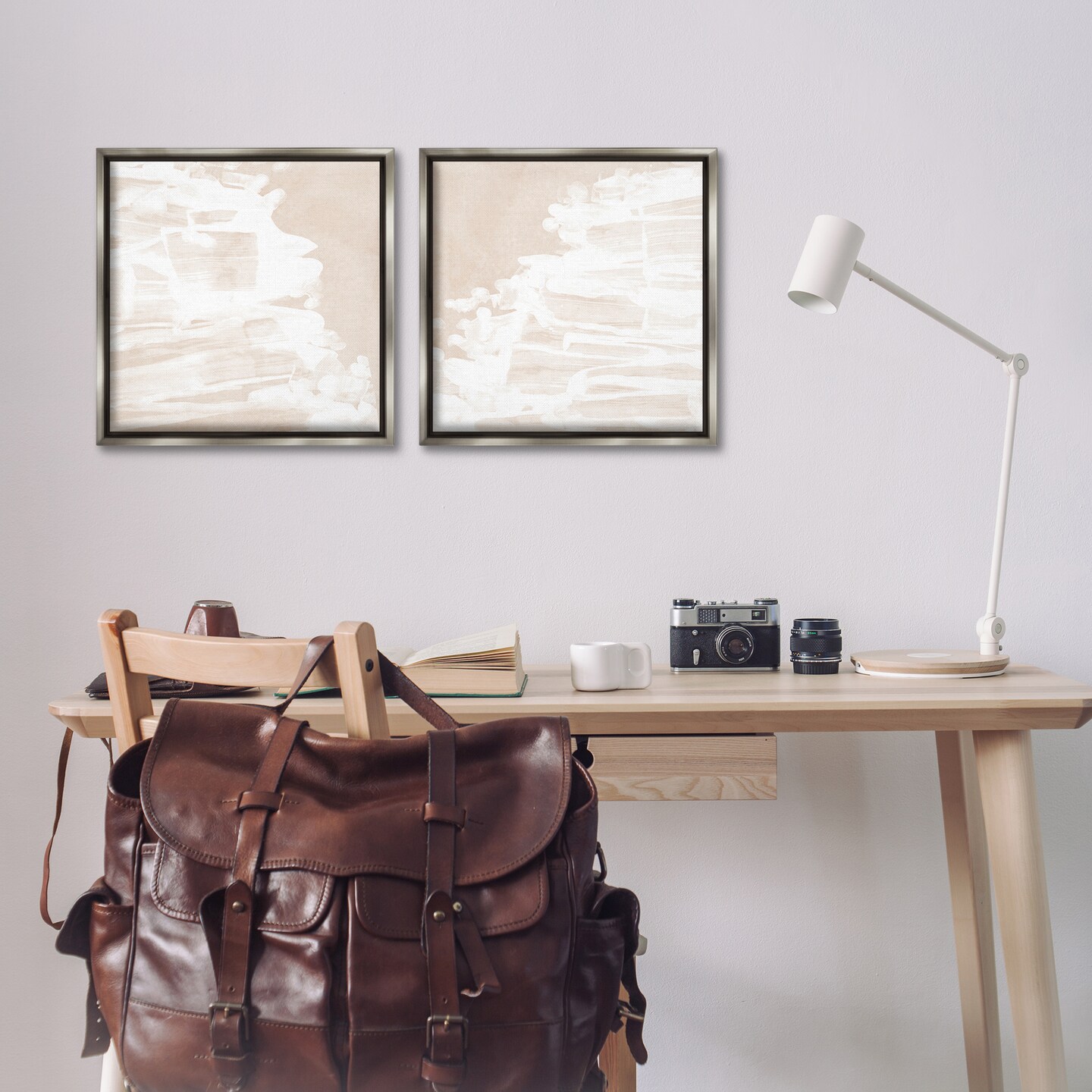 Stupell Industries Abstract Cream Layered Strokes 2 pc Framed Floater Canvas Wall Art Set Design by June Erica Vess
