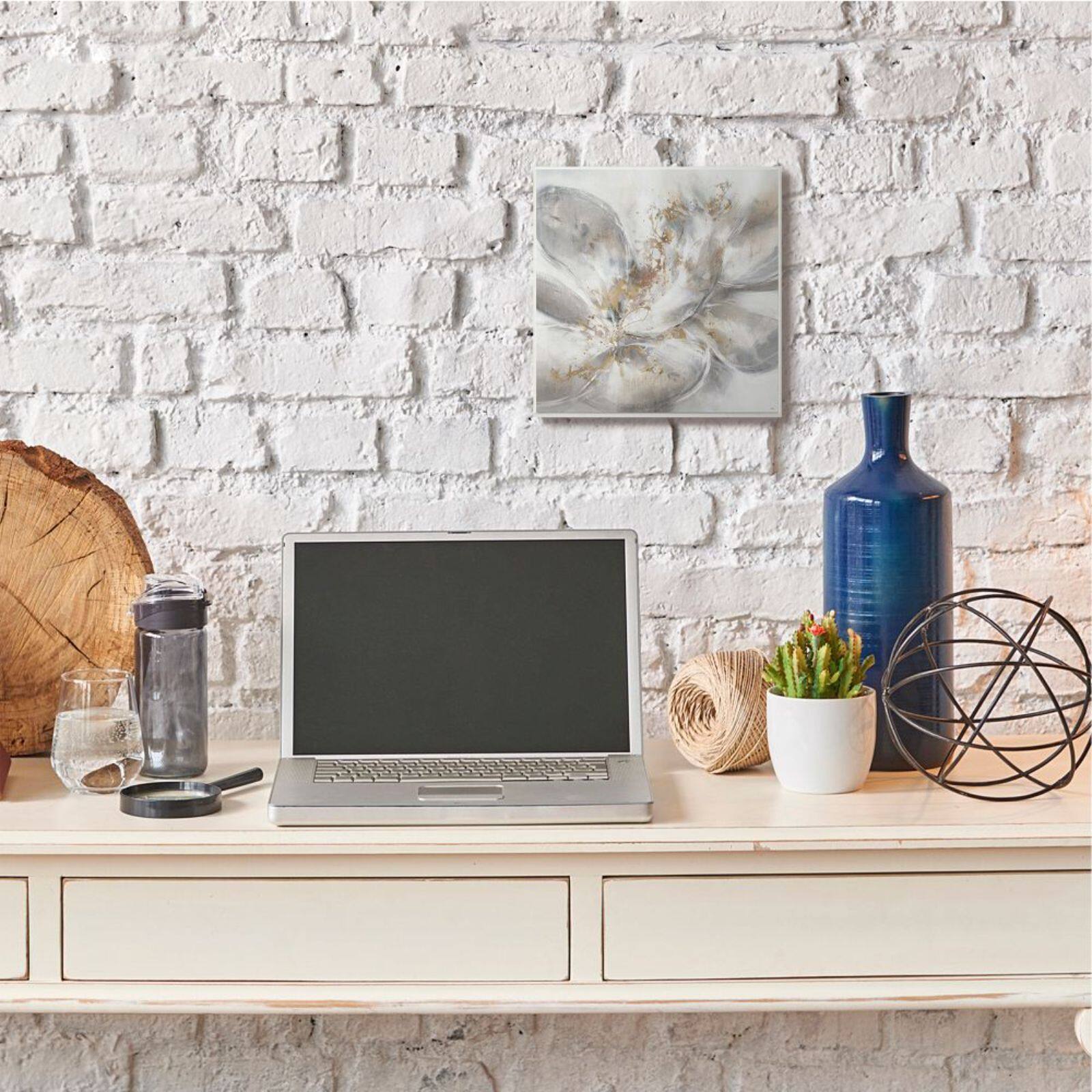 Stupell Industries Abstract Flower Bloom Gray Gold White Framed Wall Art