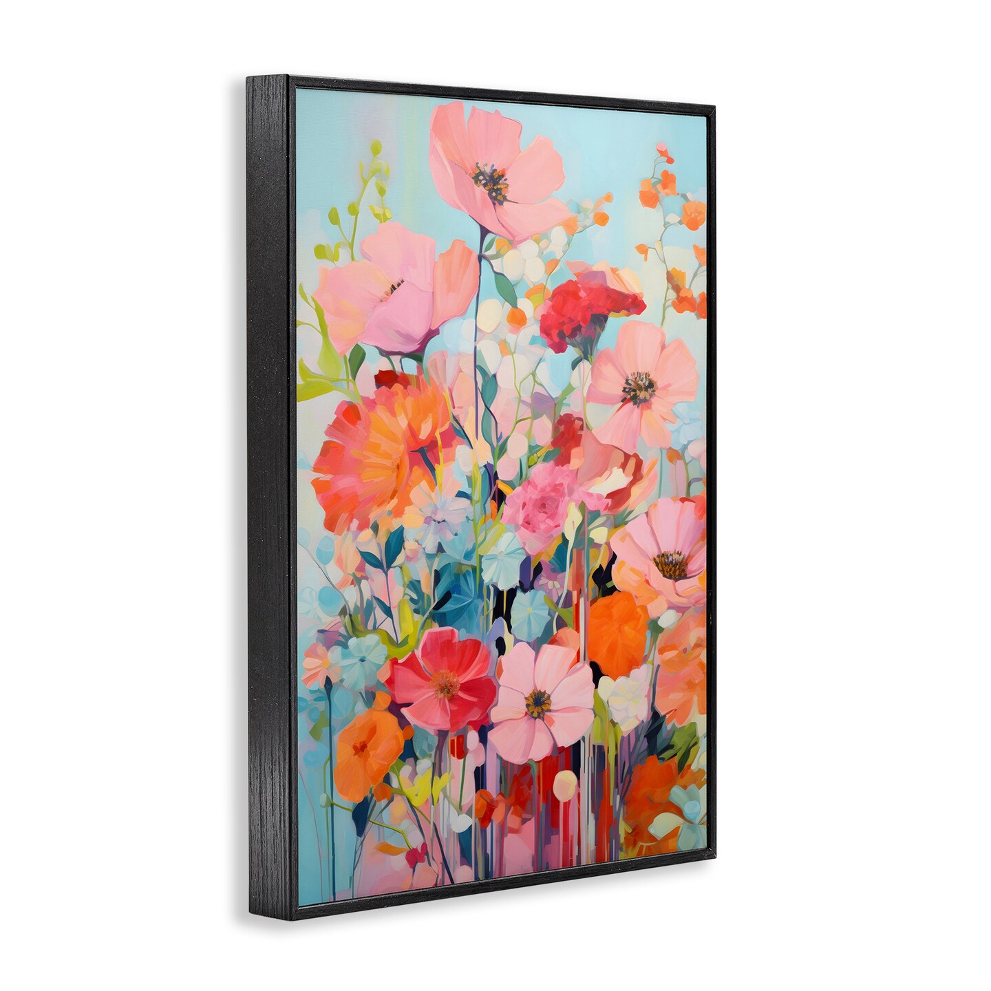 Stupell Industries Abstract Flowers on Blue Framed Giclee Wall Art Design by LSR Design Studio