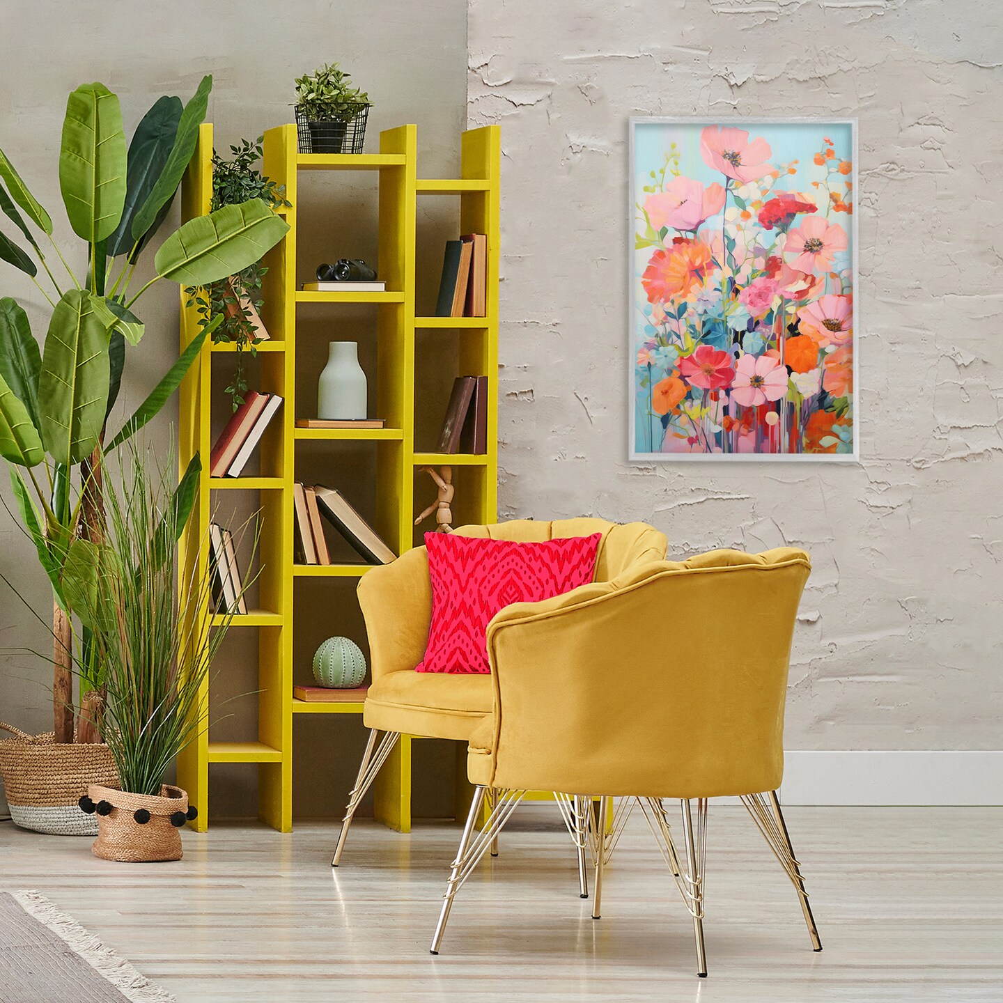 Stupell Industries Abstract Flowers on Blue Framed Giclee Wall Art Design by LSR Design Studio