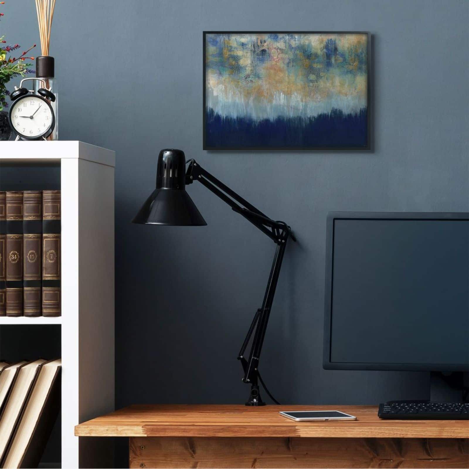 Stupell Industries Abstract Gold Blue Textured Surface Painting Black Framed Wall Art