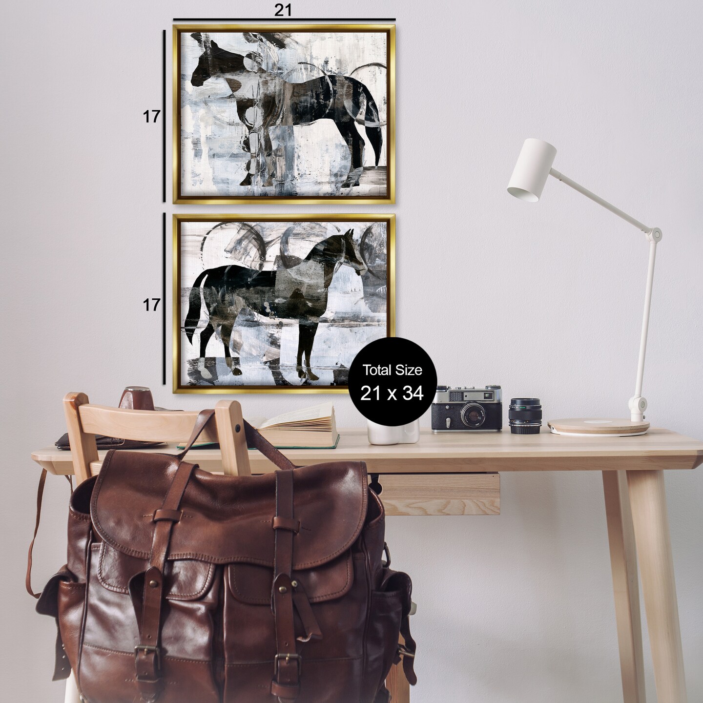Stupell Industries Abstract Horse Silhouette Circles 2 pc Framed Floater Canvas Wall Art Set Design by Ethan Harper