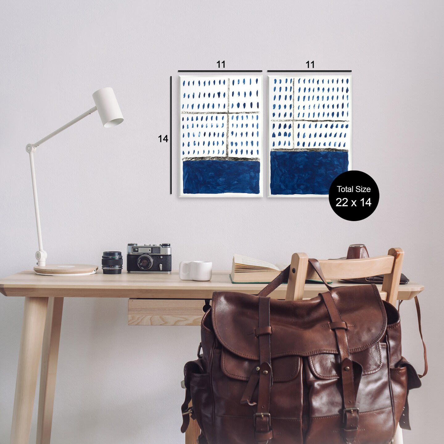 Stupell Industries Abstract Indigo Block Room 2 pc Wall Plaque Art Set Design by Michael Willett