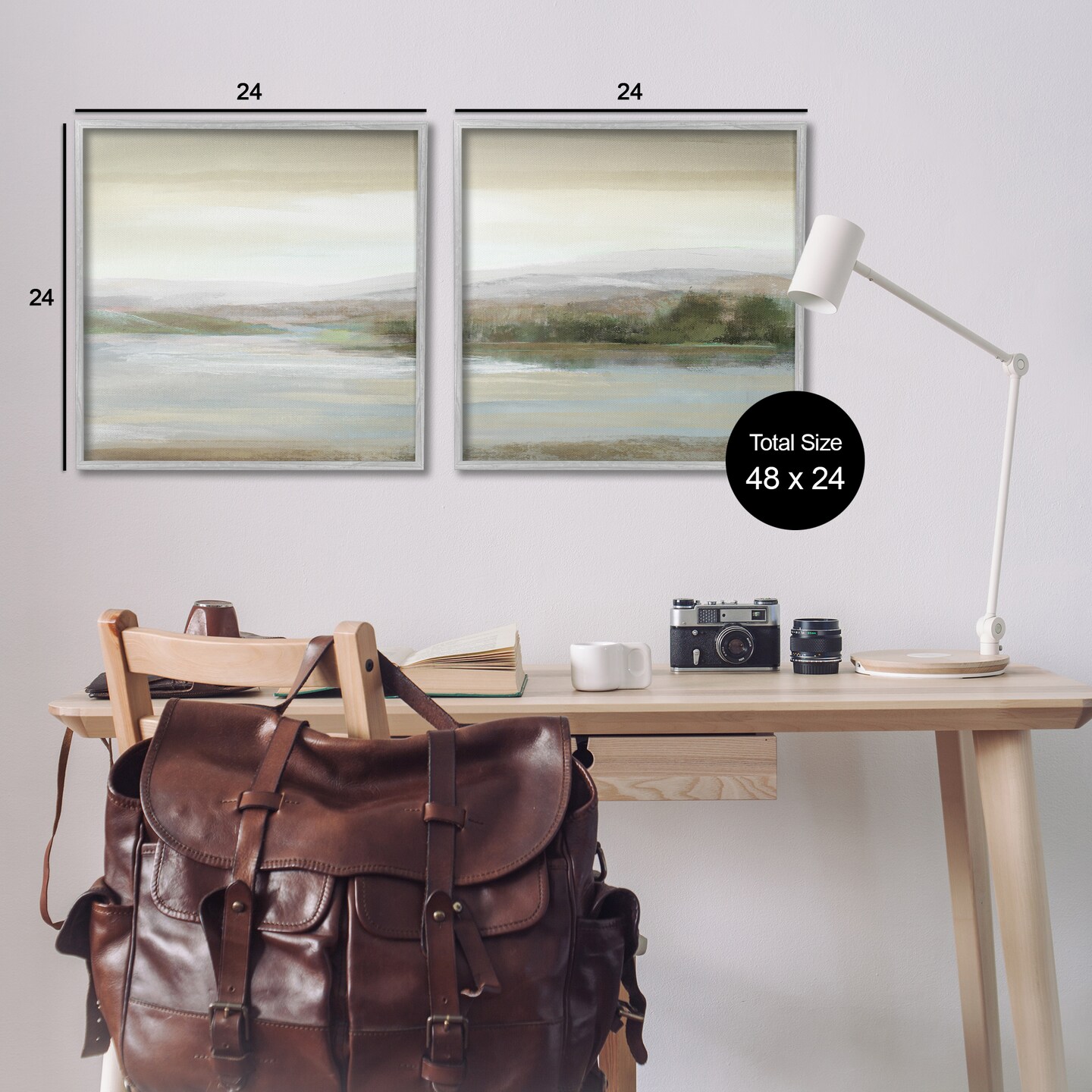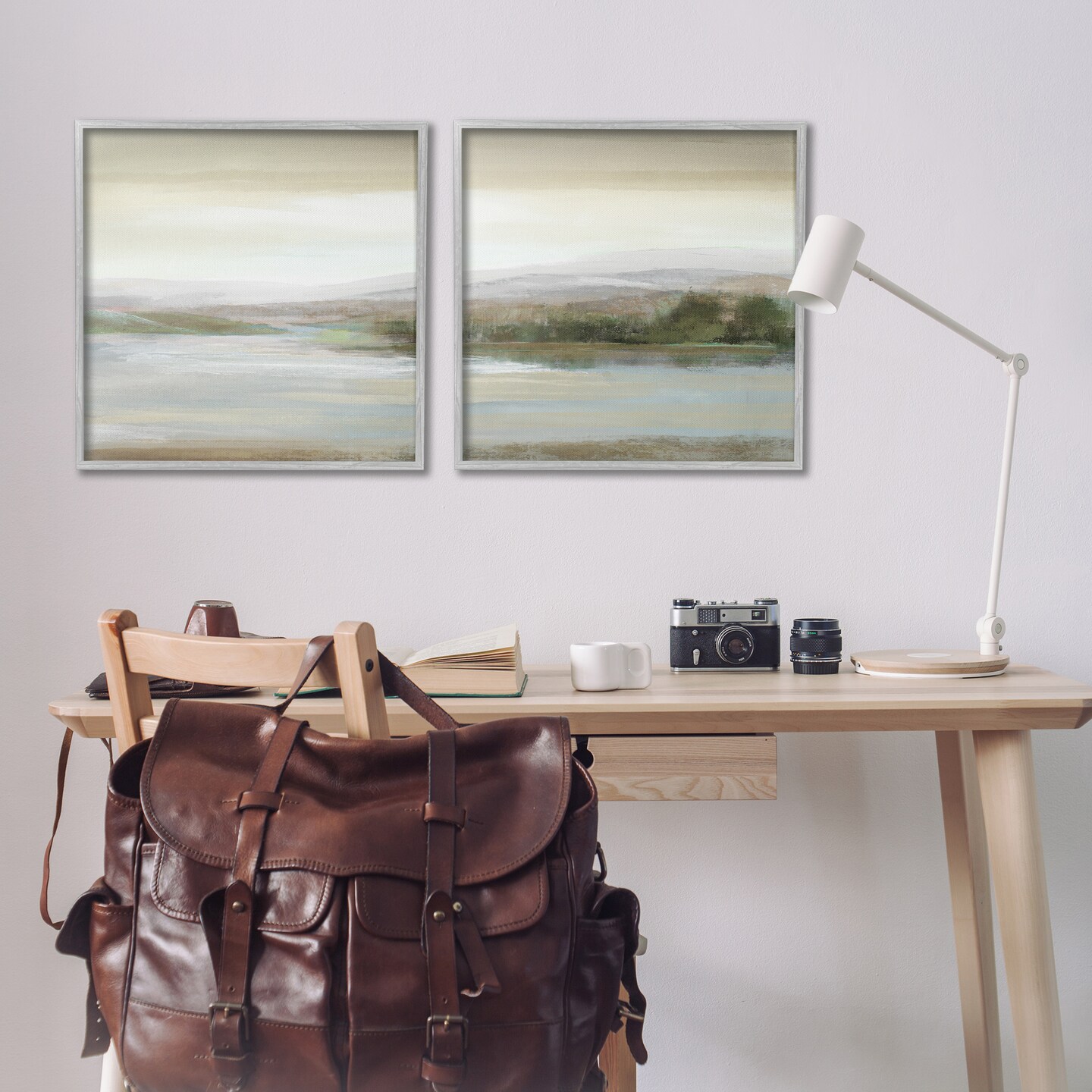 Stupell Industries Abstract Lakeside Landscape 2 pc Framed Giclee Wall Art Set Design by Nan