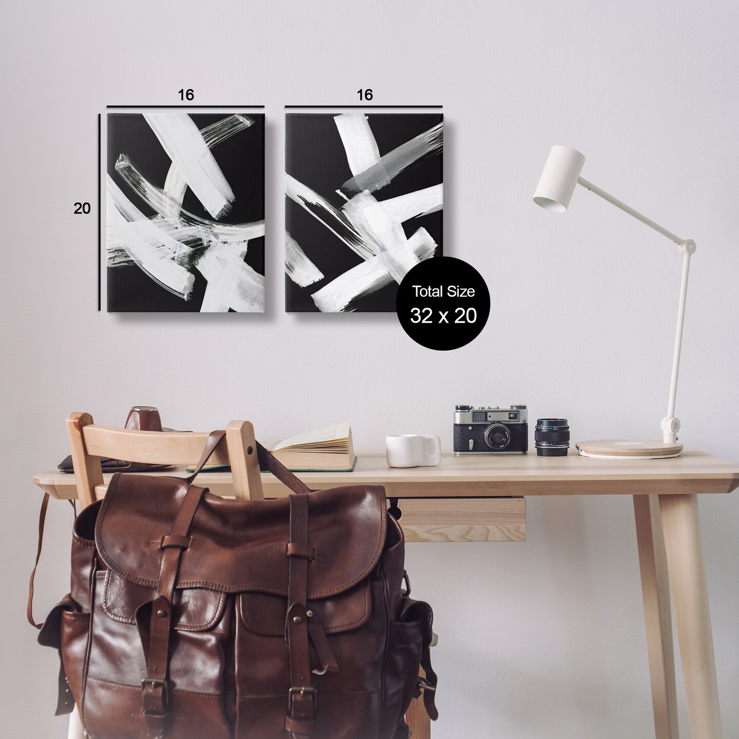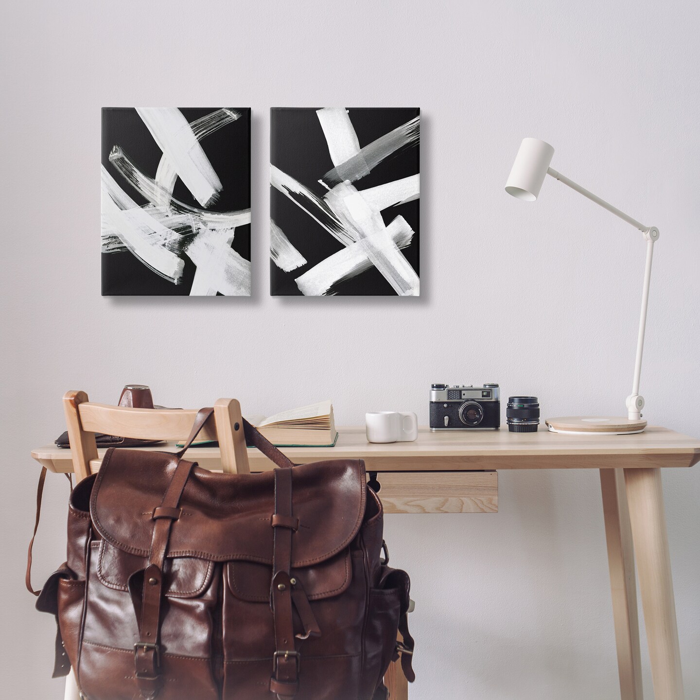 Stupell Industries Abstract Lines White on Black 2 pc Canvas Wall Art Set Design by Susan Jill