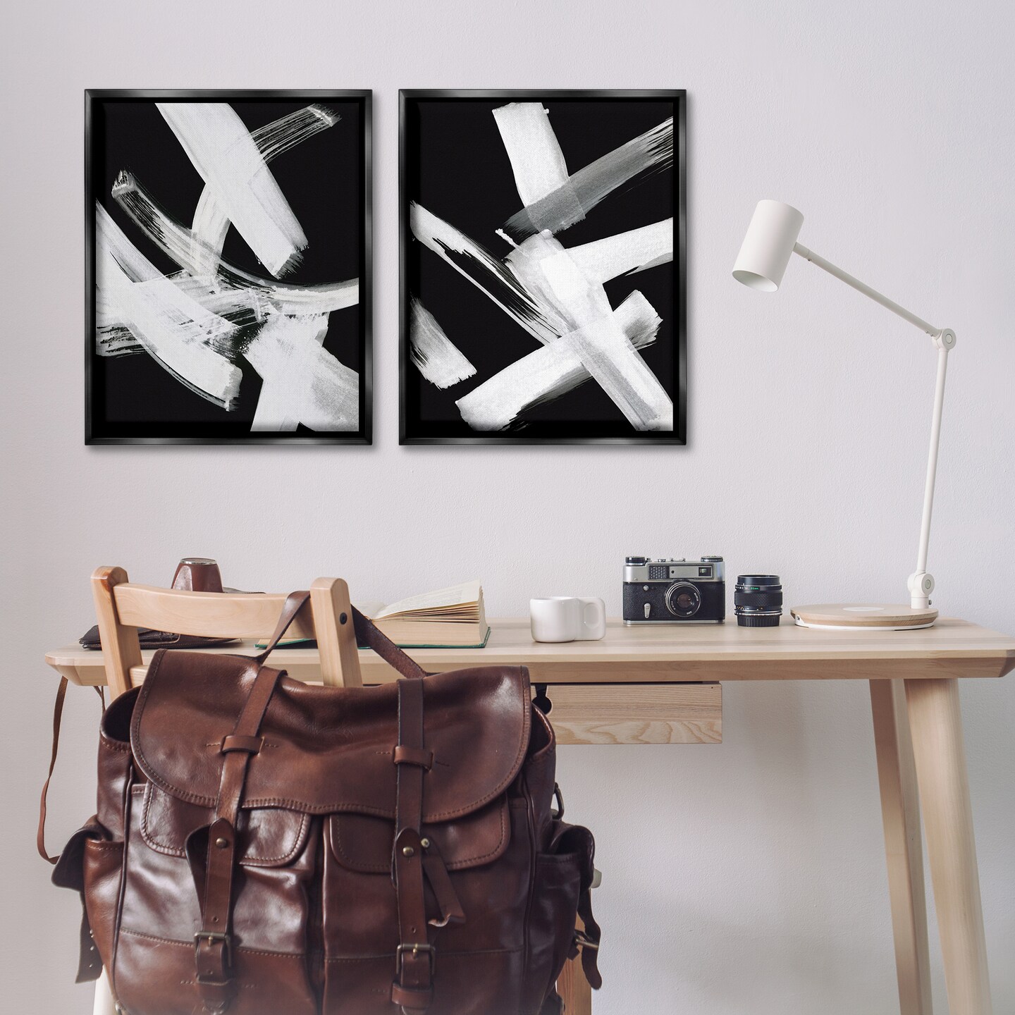 Stupell Industries Abstract Lines White on Black 2 pc Framed Floater Canvas Wall Art Set Design by Susan Jill