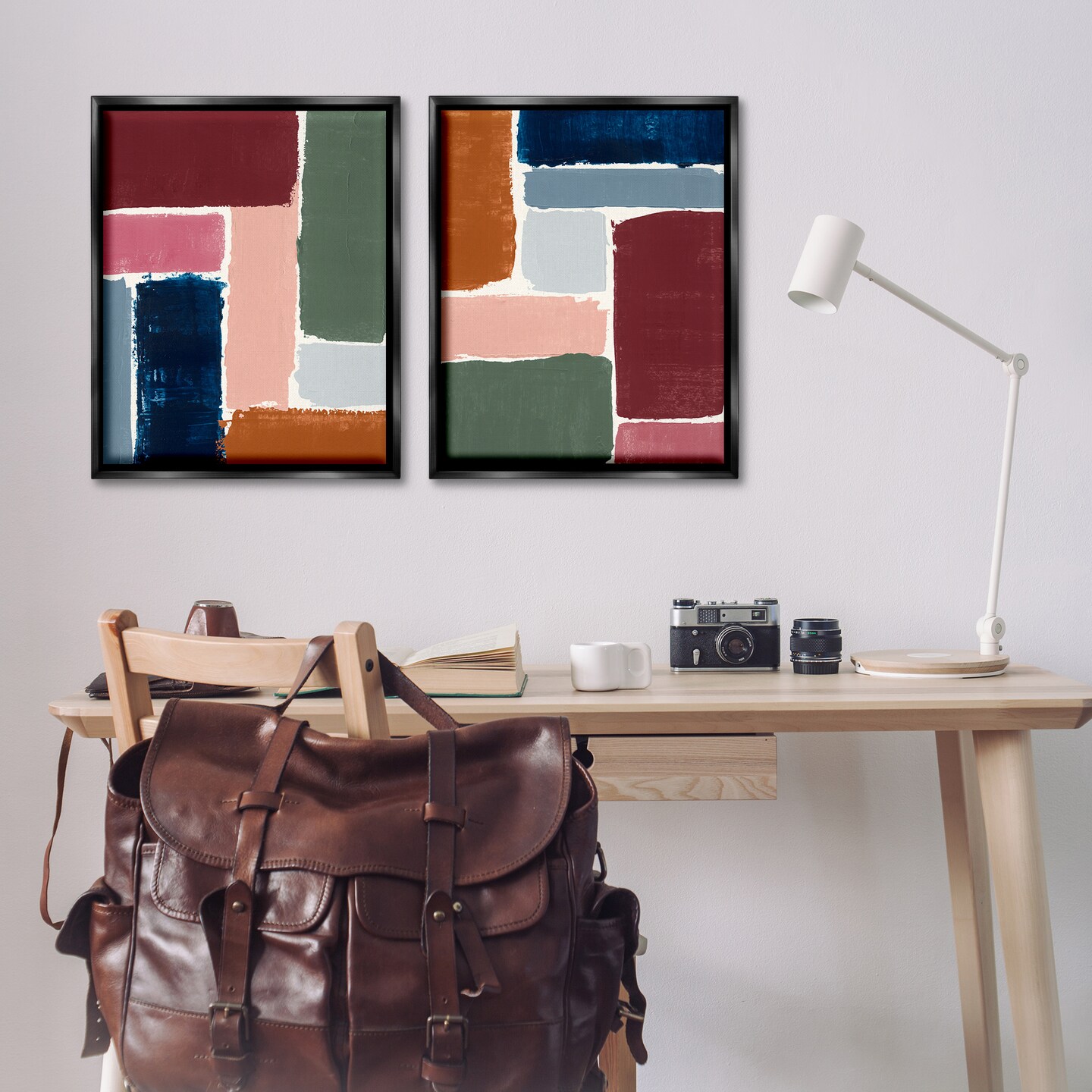 Stupell Industries Abstract Modular Color Block 2 pc Framed Floater Canvas Wall Art Set Design by Victoria Barnes