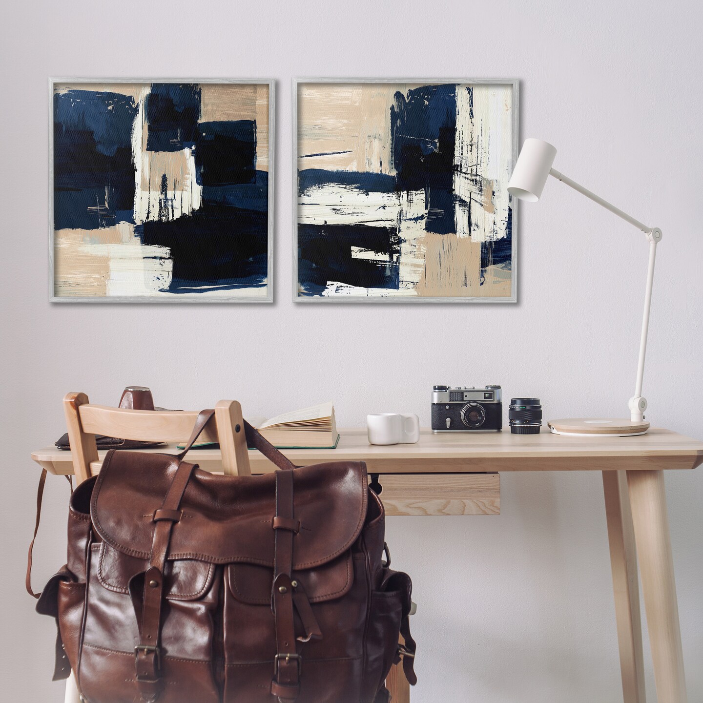 Stupell Industries Abstract Navy Neutral 2 pc Framed Giclee Wall Art Set Design by Susan Jill