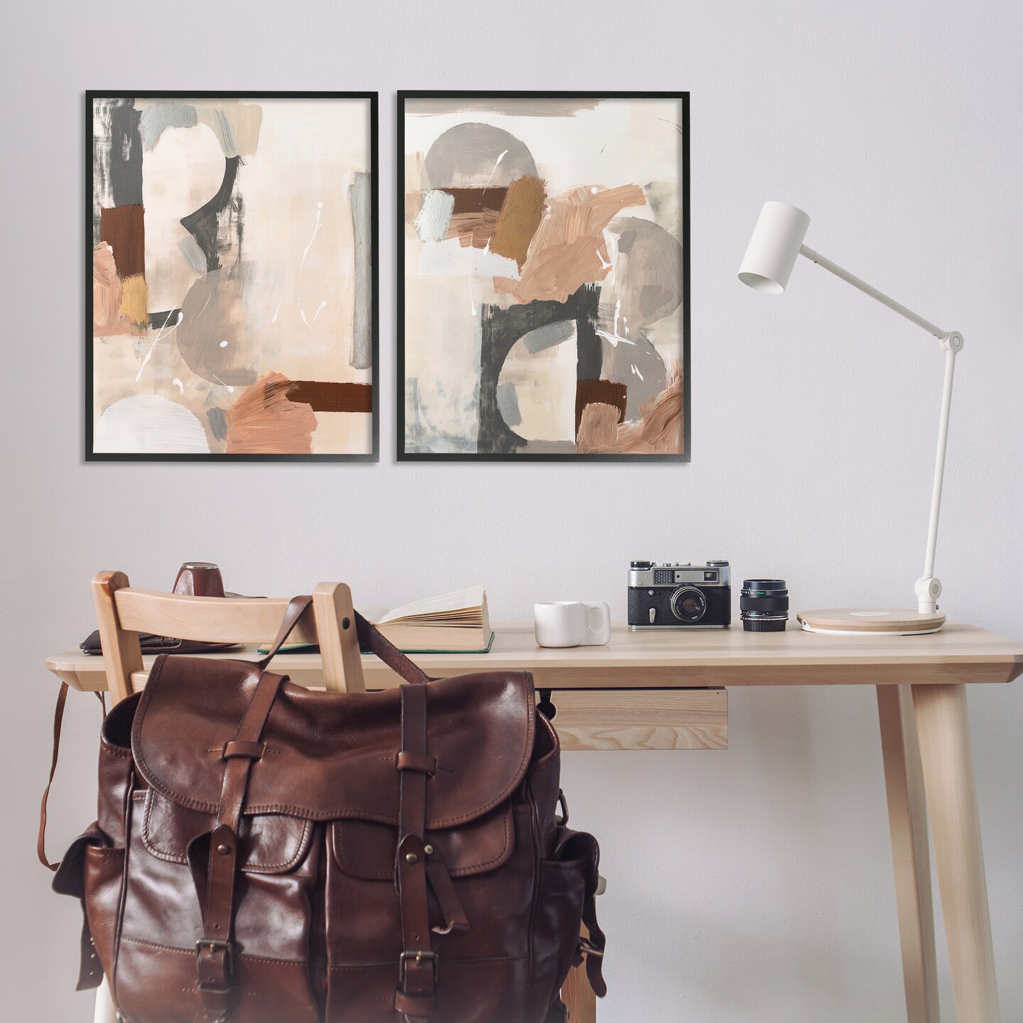 Stupell Industries Abstract Neutral Shapes Brown 2 pc Framed Giclee Wall Art Set Design by Victoria Barnes