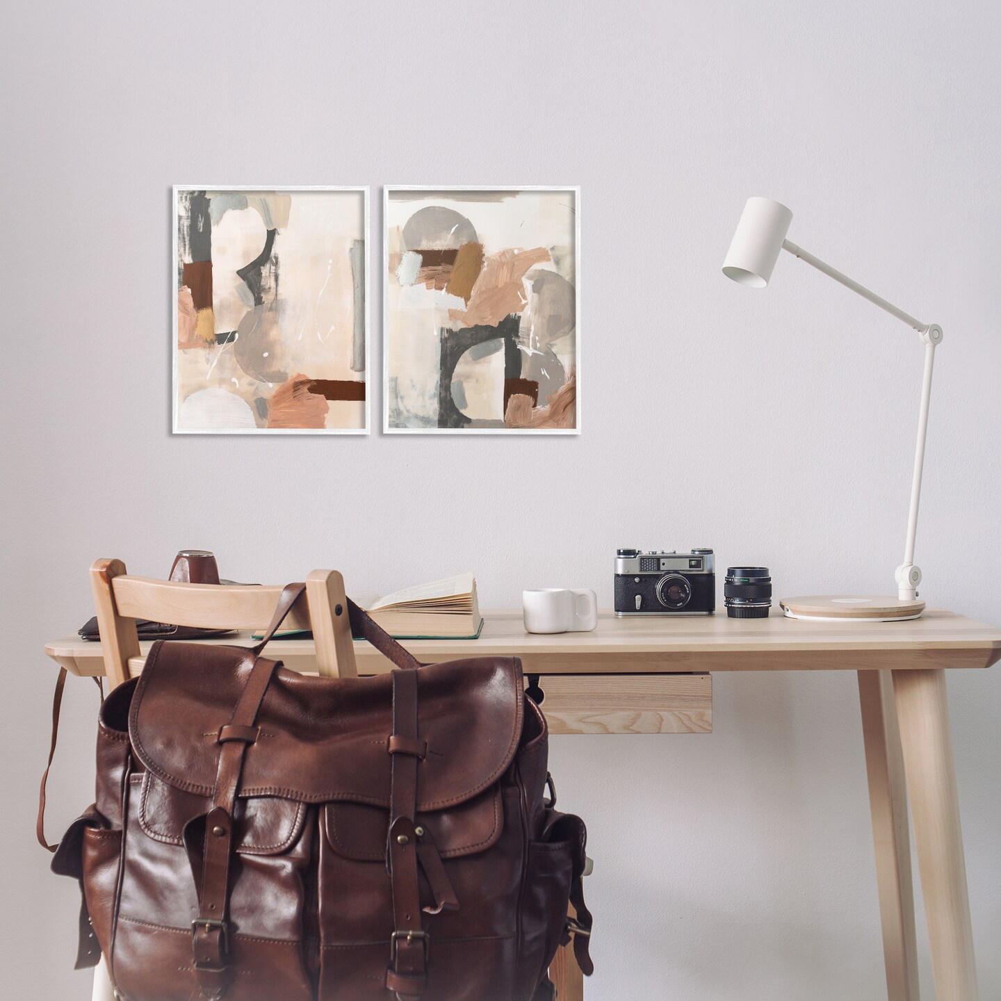 Stupell Industries Abstract Neutral Shapes Brown 2 pc Framed Giclee Wall Art Set Design by Victoria Barnes