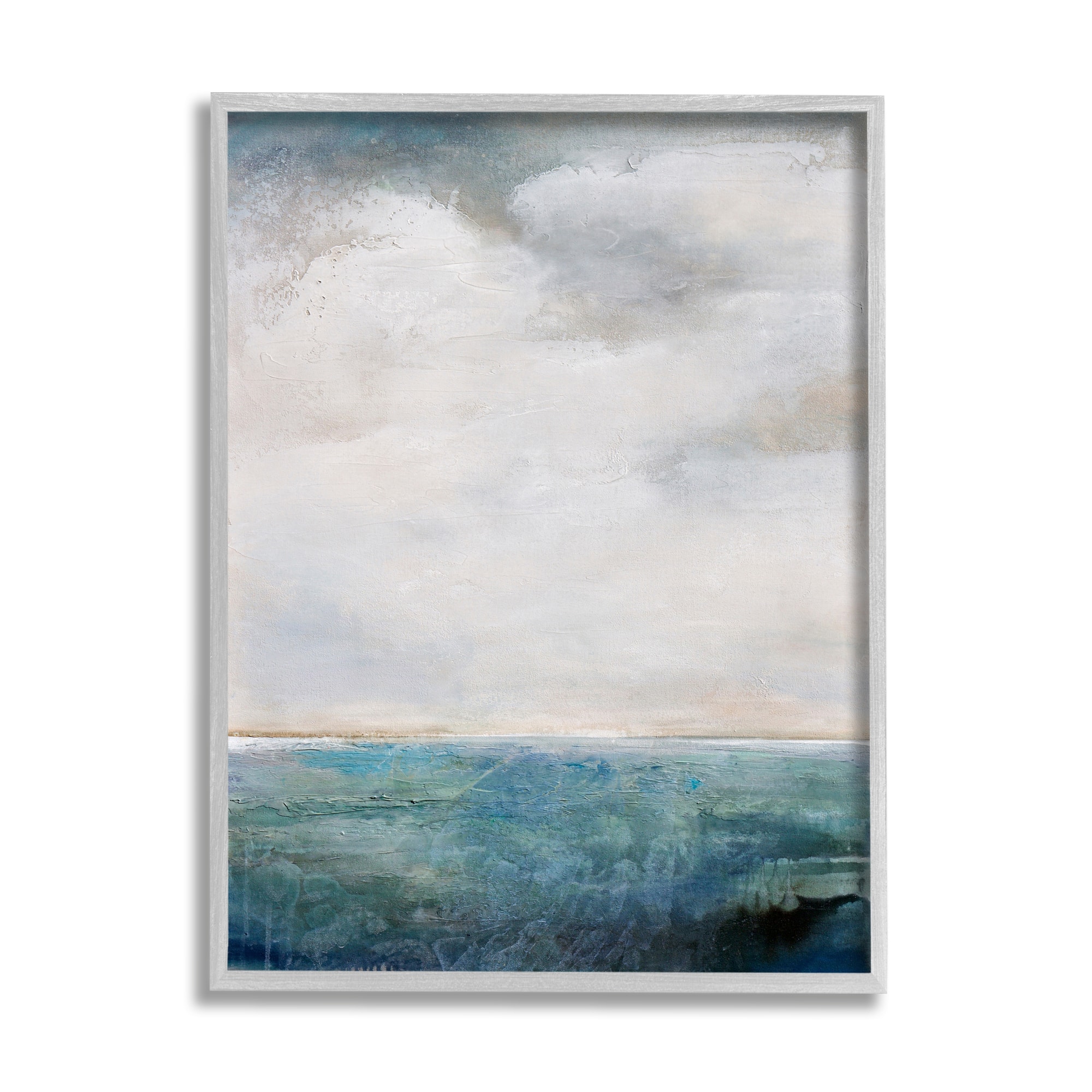 Stupell Industries Abstract Ocean Horizon Line Nautical Water Cloudy Sky Framed Wall Art