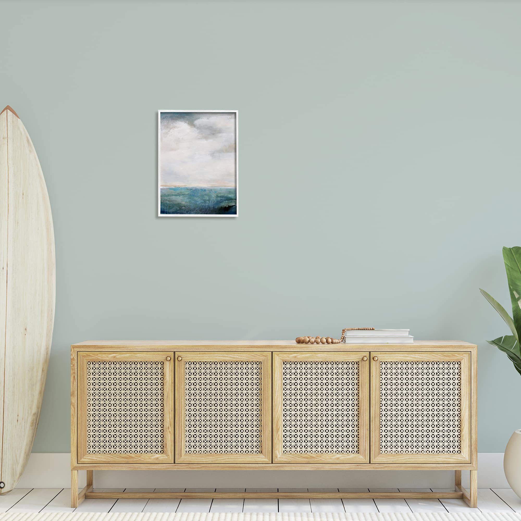 Stupell Industries Abstract Ocean Horizon Line Nautical Water Cloudy Sky Framed Wall Art