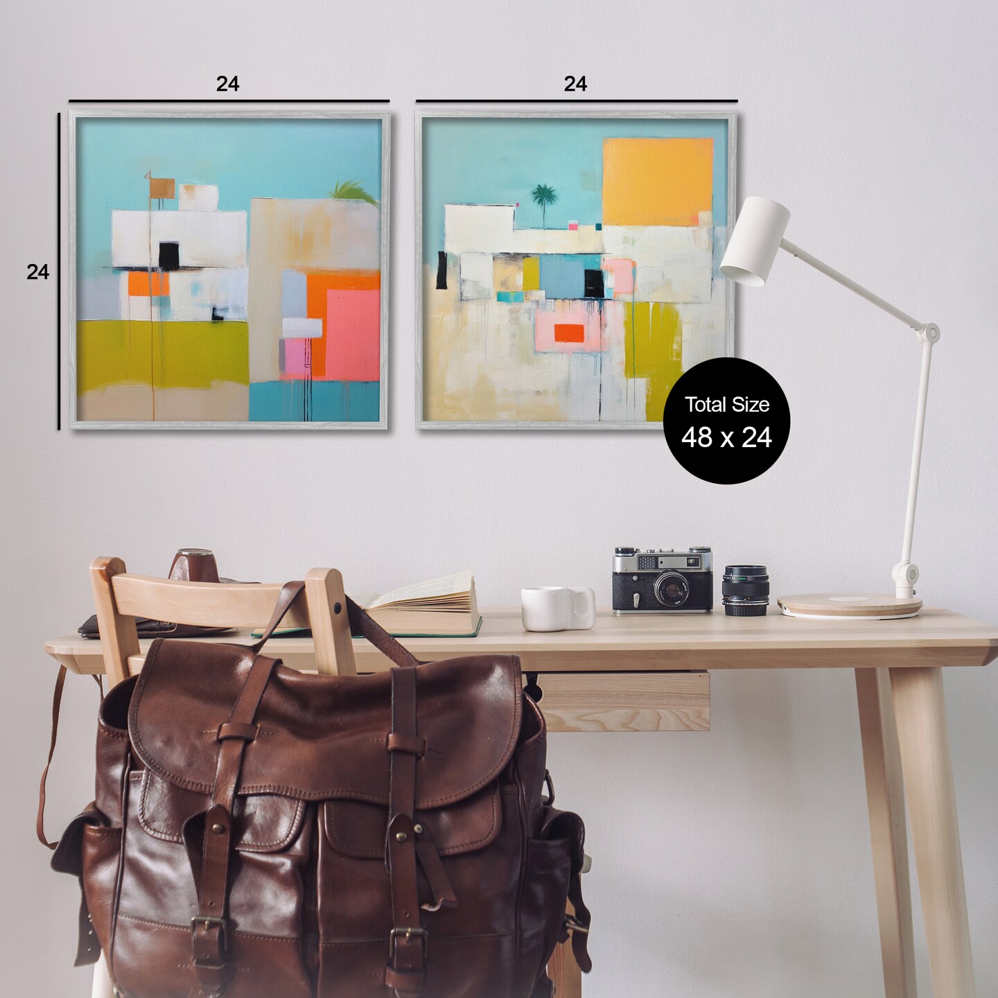 Stupell Industries Abstract Square Block Apartment 2 pc Framed Giclee Wall Art Set Design by Irena Orlov
