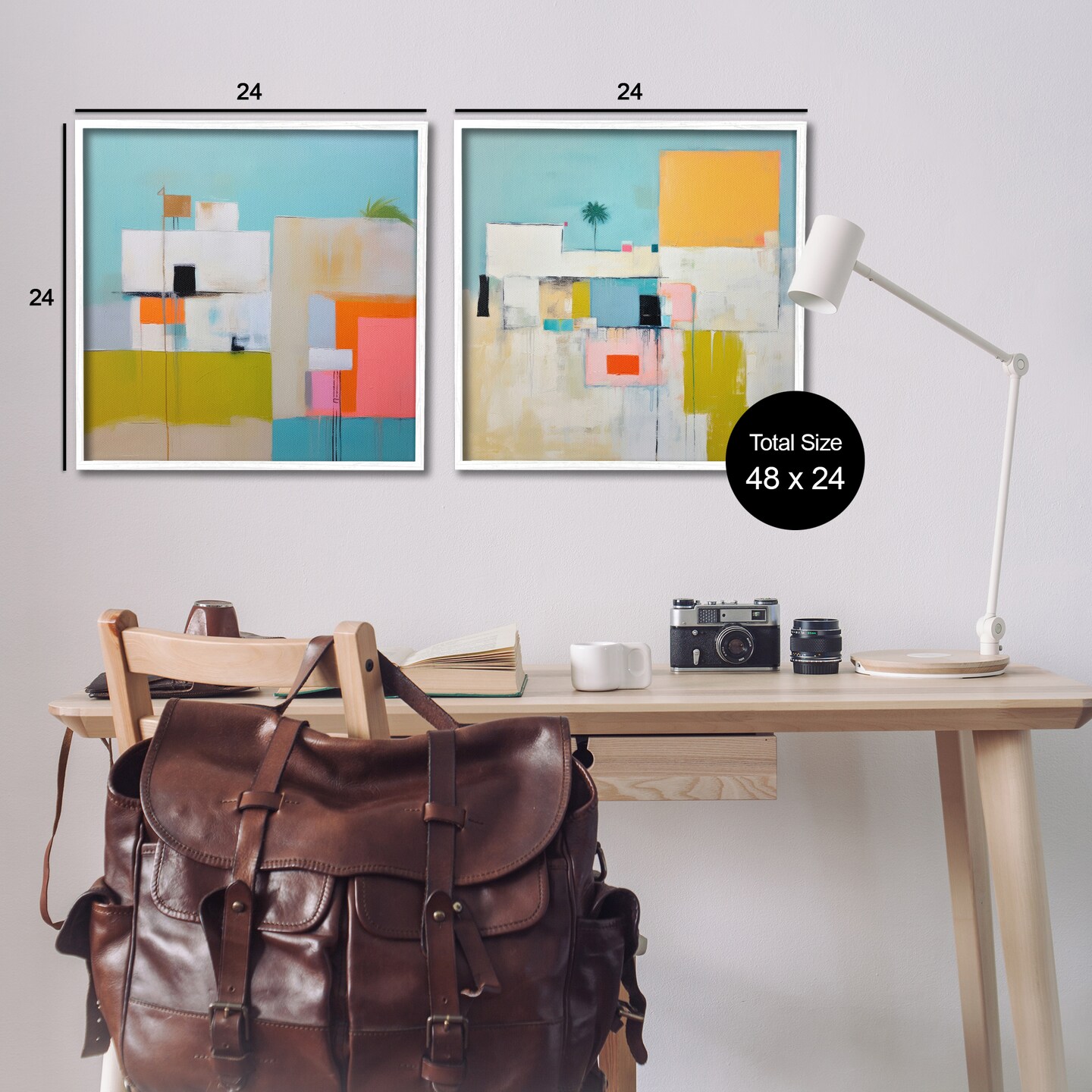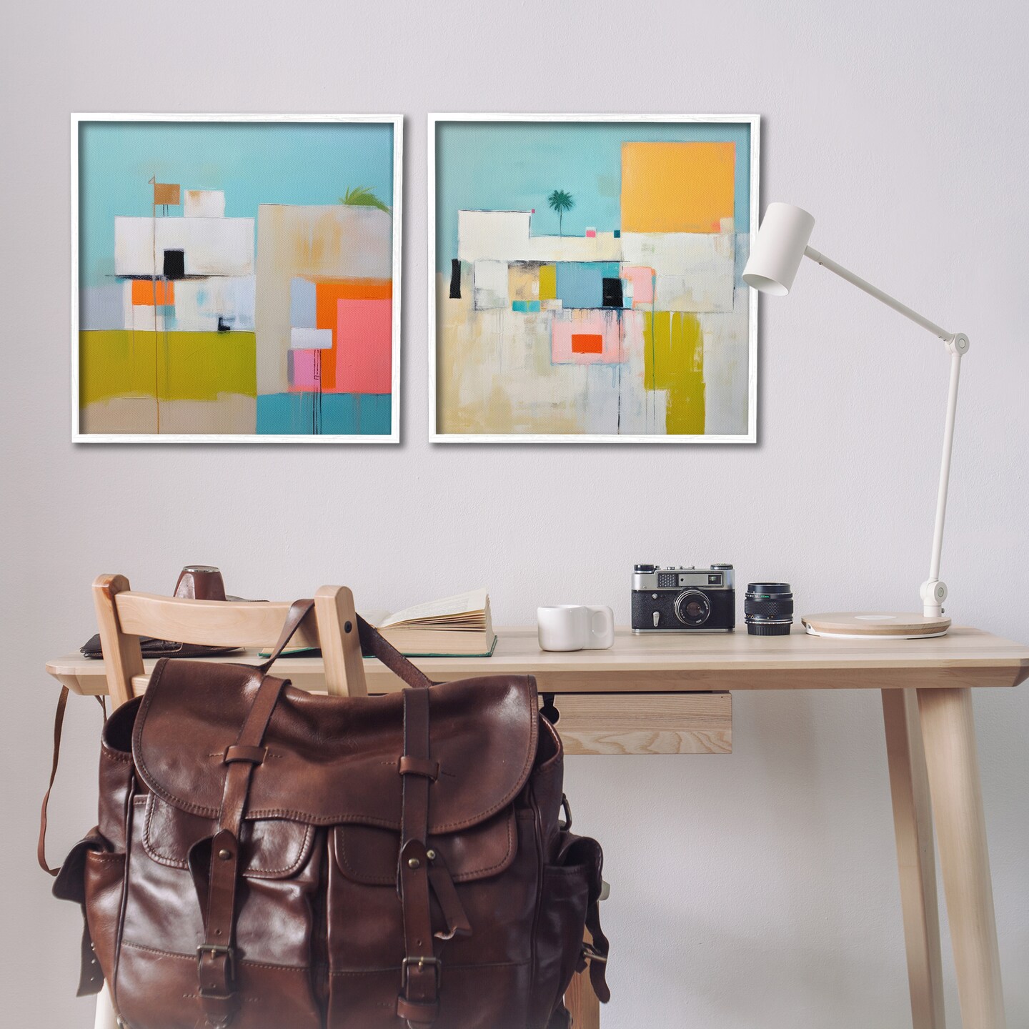 Stupell Industries Abstract Square Block Apartment 2 pc Framed Giclee Wall Art Set Design by Irena Orlov