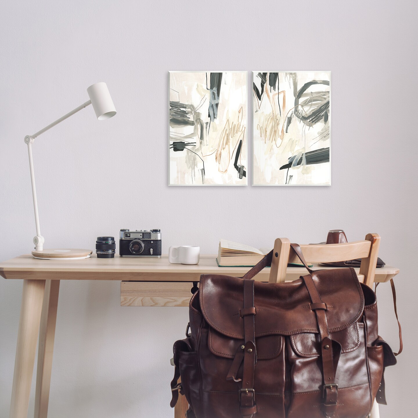 Stupell Industries Abstract Squiggly Beige Lines 2 pc Wall Plaque Art Set Design by June Erica Vess