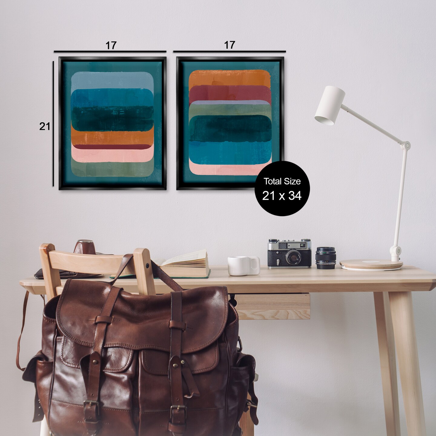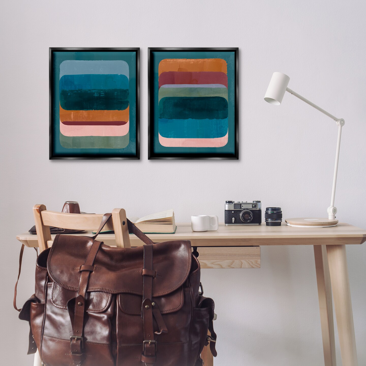 Stupell Industries Abstract Teal Stacked Colors 2 pc Framed Floater Canvas Wall Art Set Design by Victoria Barnes