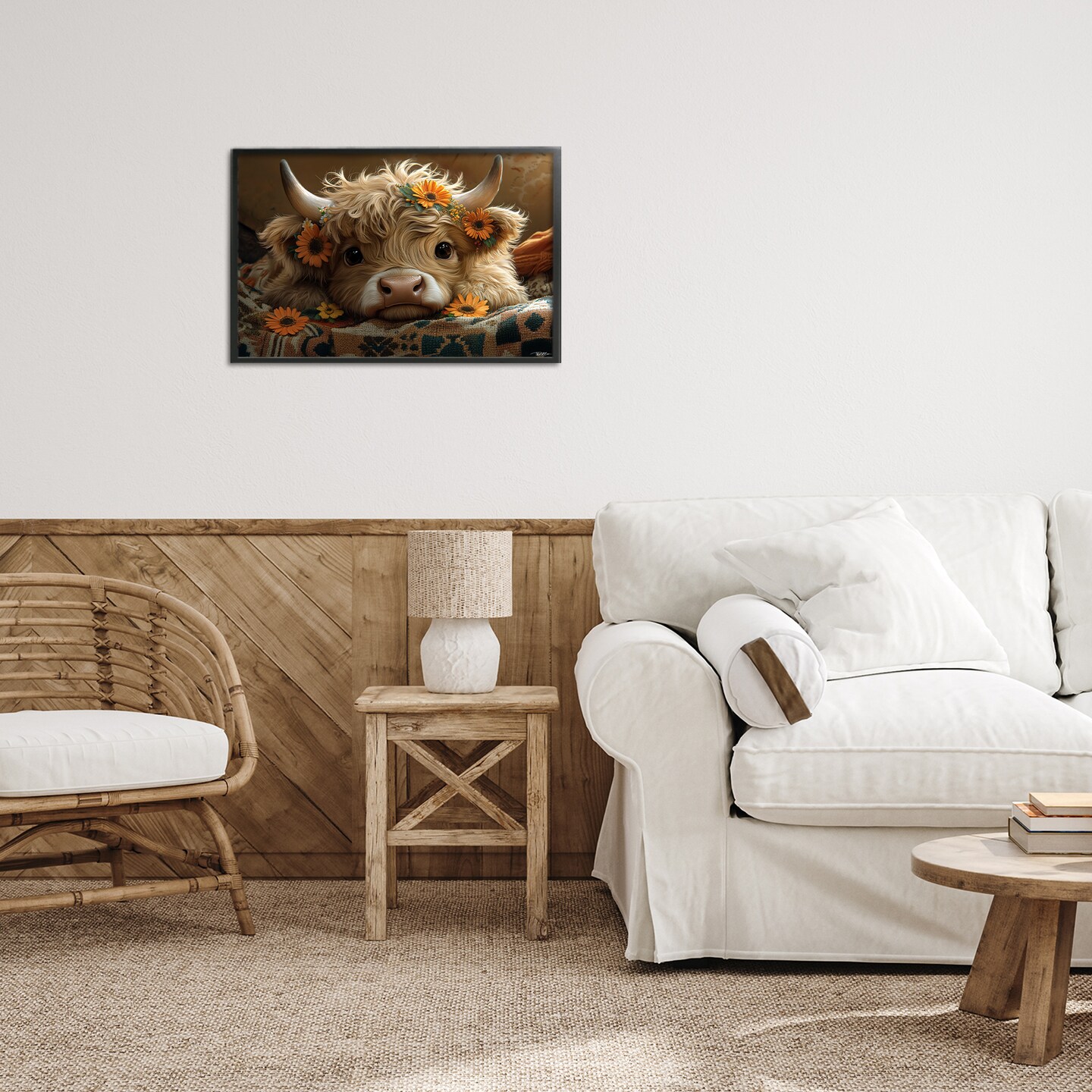 Stupell Industries Adorable Flower Bedecked Cattle Framed Giclee, design by Momart