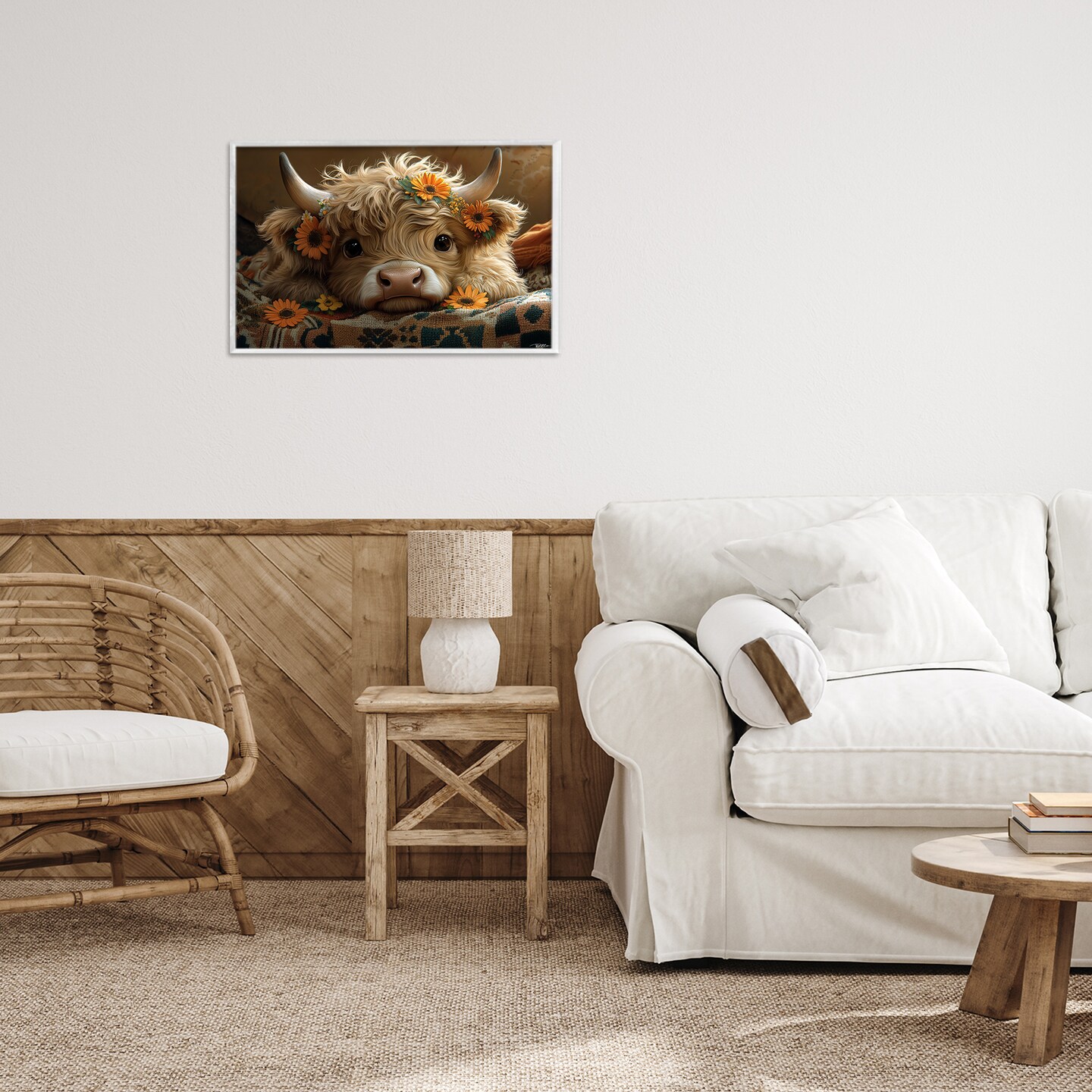 Stupell Industries Adorable Flower Bedecked Cattle Framed Giclee, design by Momart