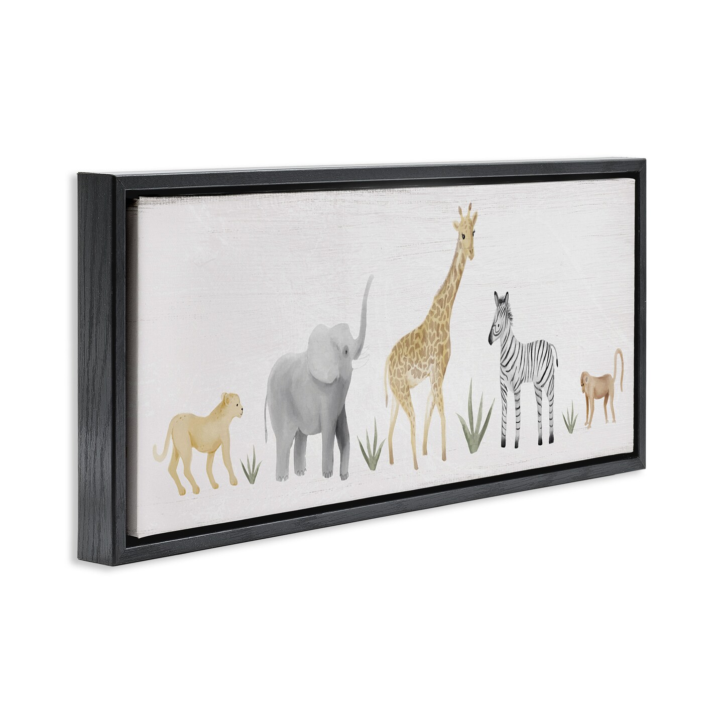 Stupell Industries Adorable Jungle Animals Wildlife Framed Floater Canvas Wall Art