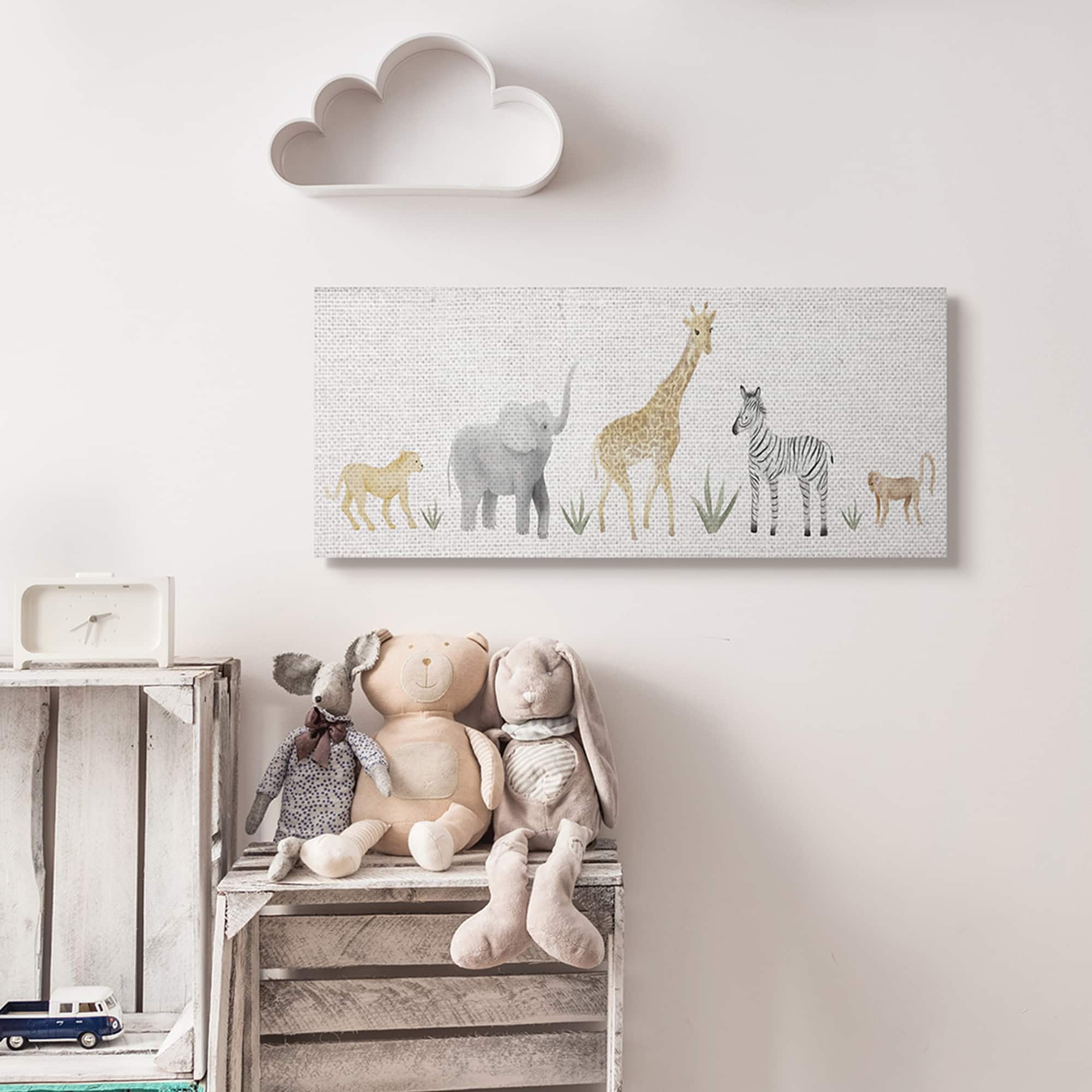 Stupell Industries Adorable Jungle Animals Wildlife Illustration Elephant Giraffe Canvas Wall Art