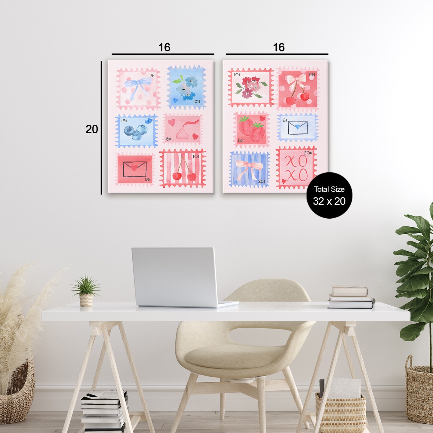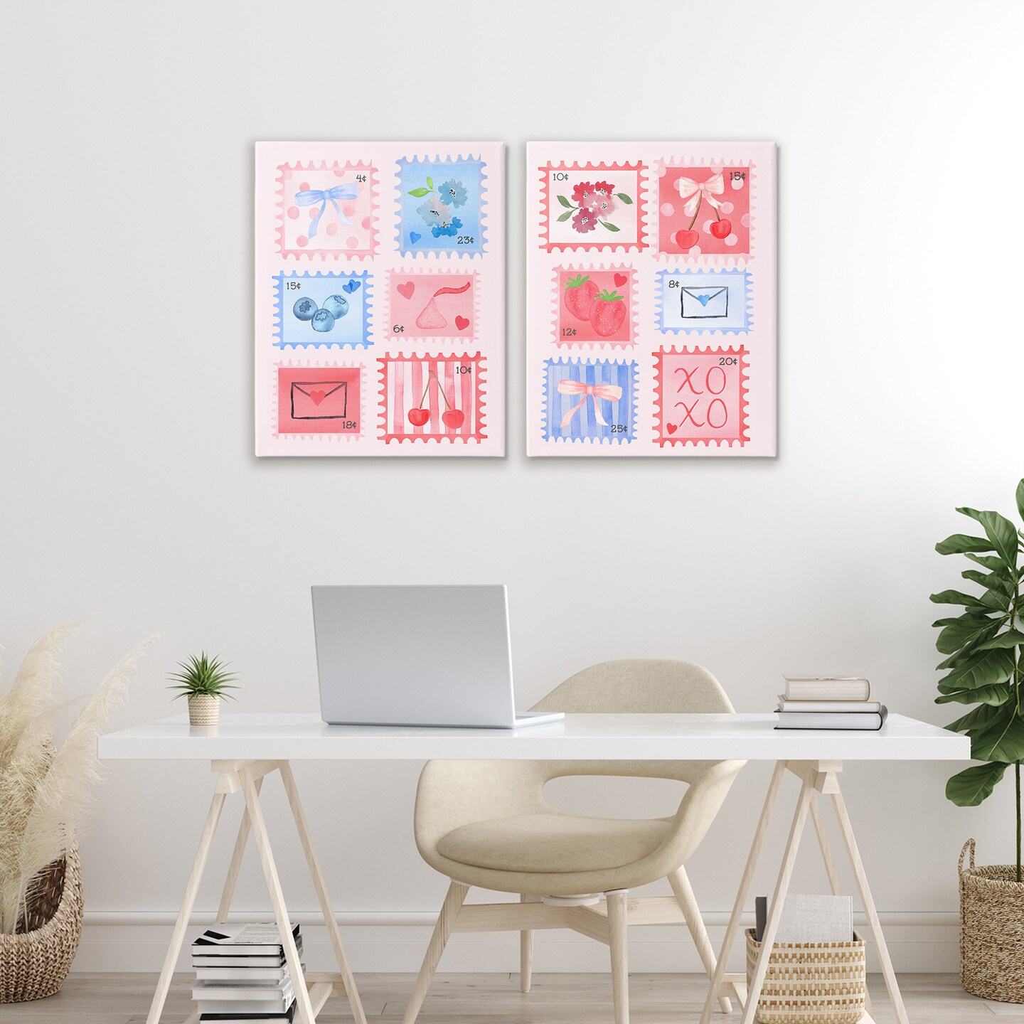 Stupell Industries Adorable Stamps Blue and Pink 2pc Canvas Set, design by Nina Jacobs