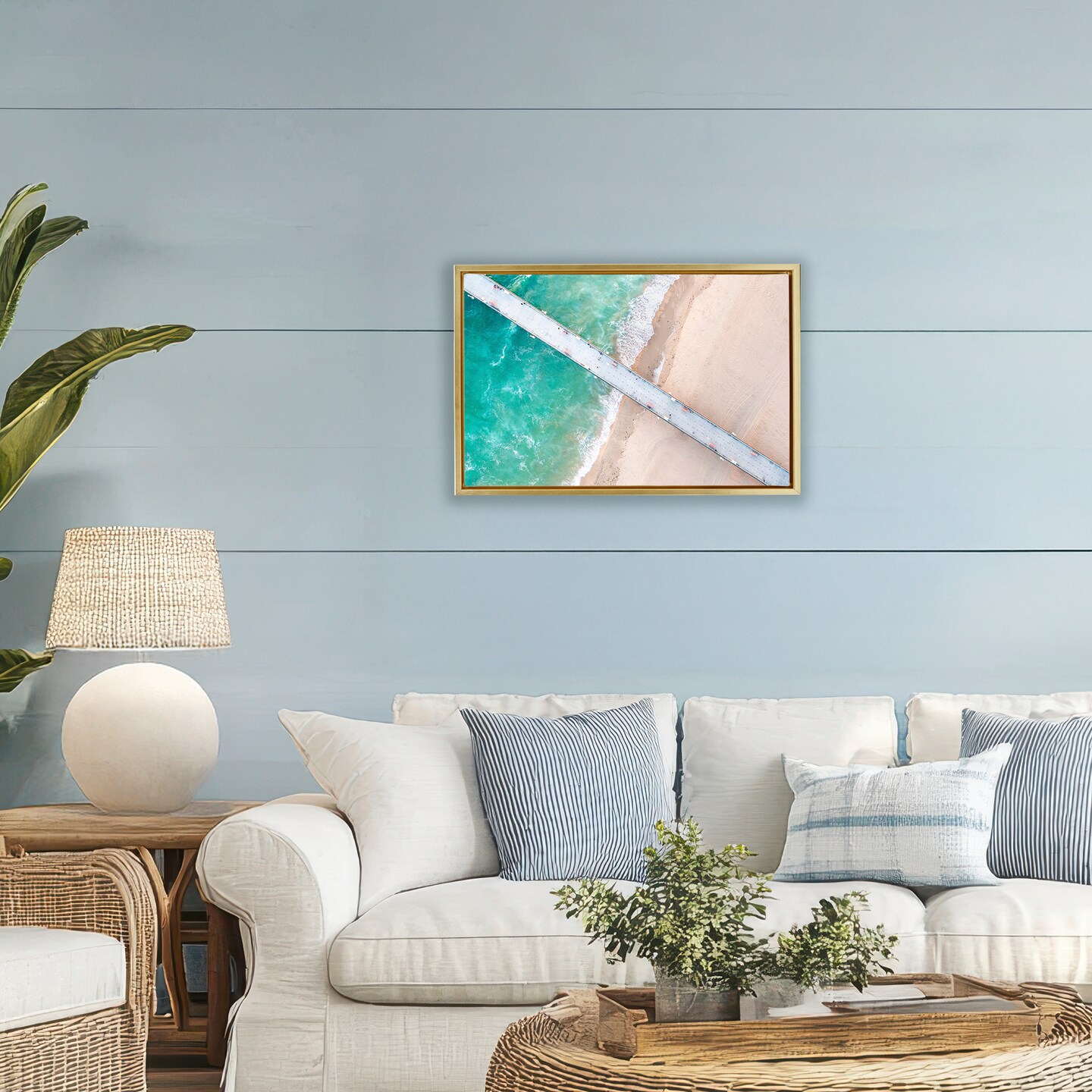 Stupell Industries Aerial View Pier Beach Floating Frame, design by Jeff Poe Photography