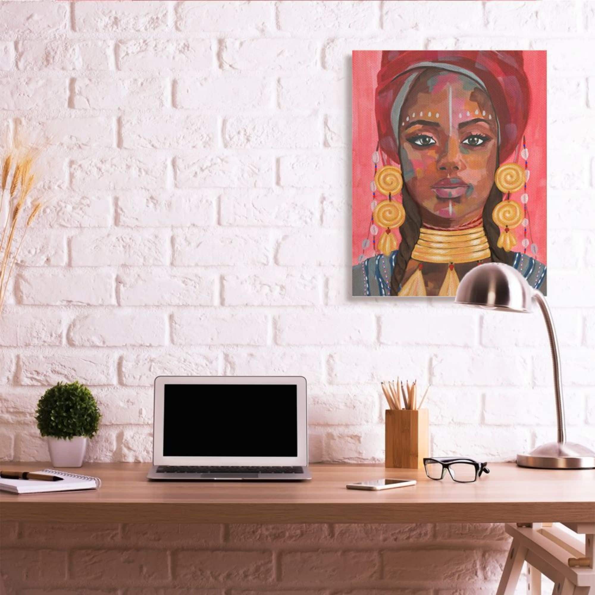 Stupell Industries African Female Portrait with Golden Jewelry Canvas Wall Art