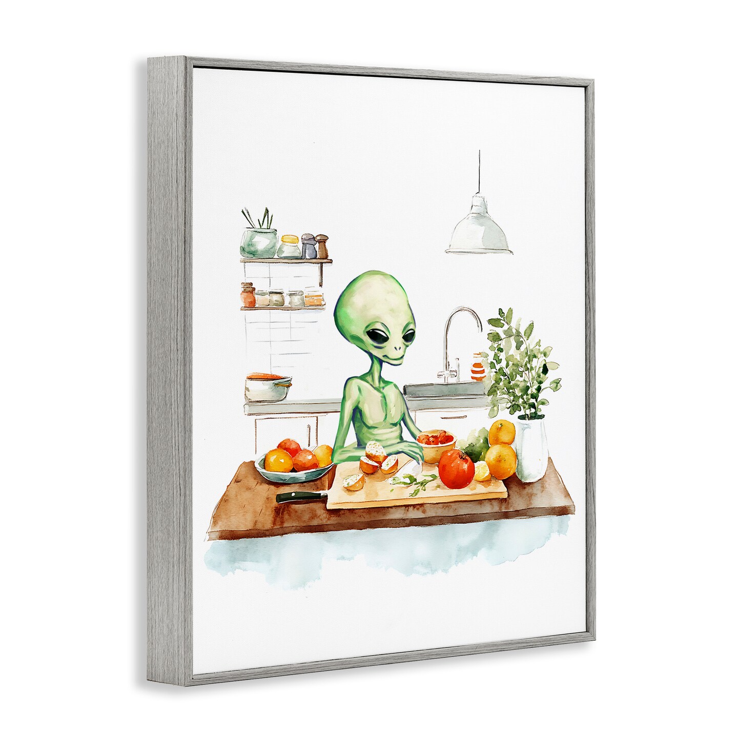 Stupell Industries Alien Cooking in Kitchen Framed Giclee Design by Lil' Rue