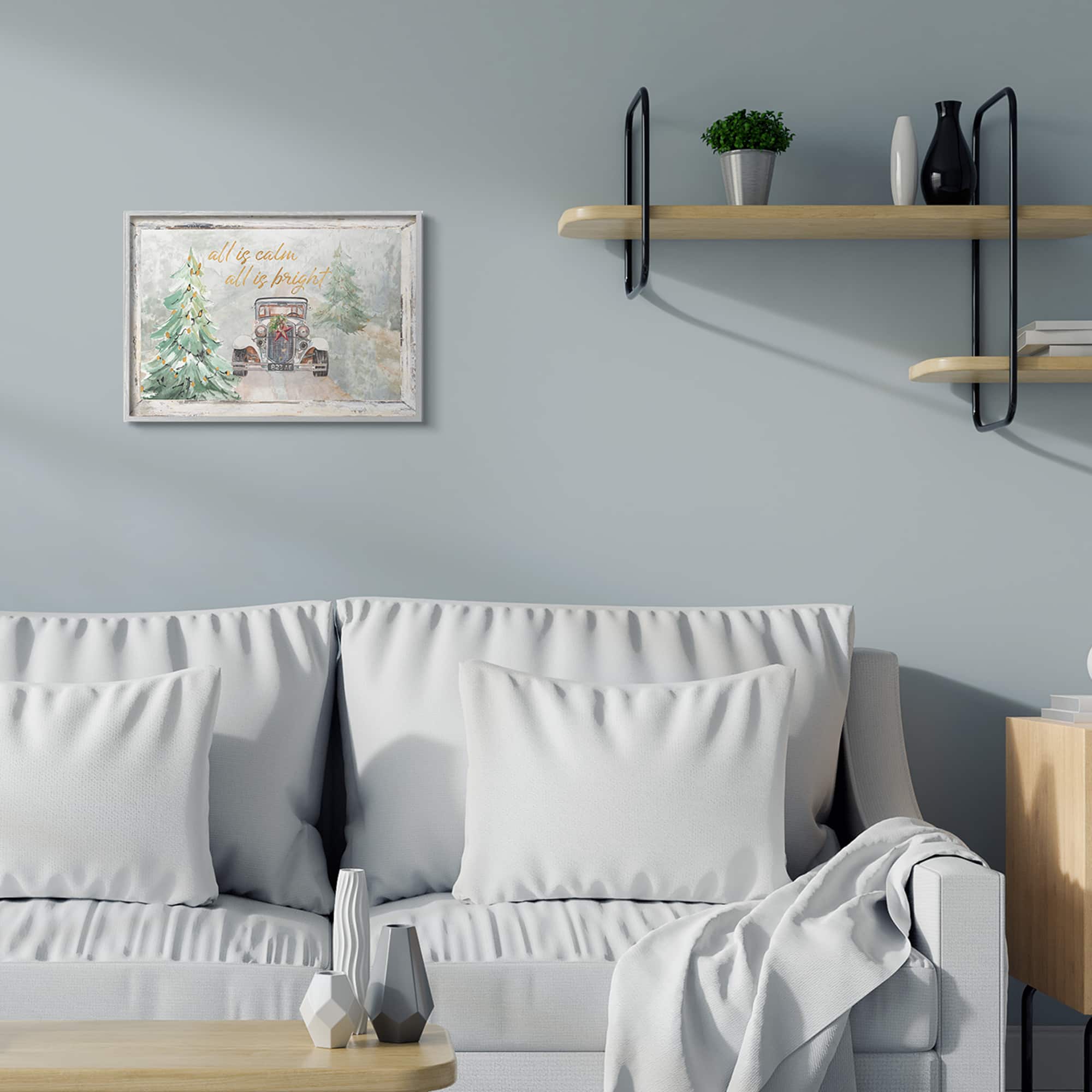 Stupell Industries All Is Calm Phrase Vintage Christmas Country Road Framed Wall Art