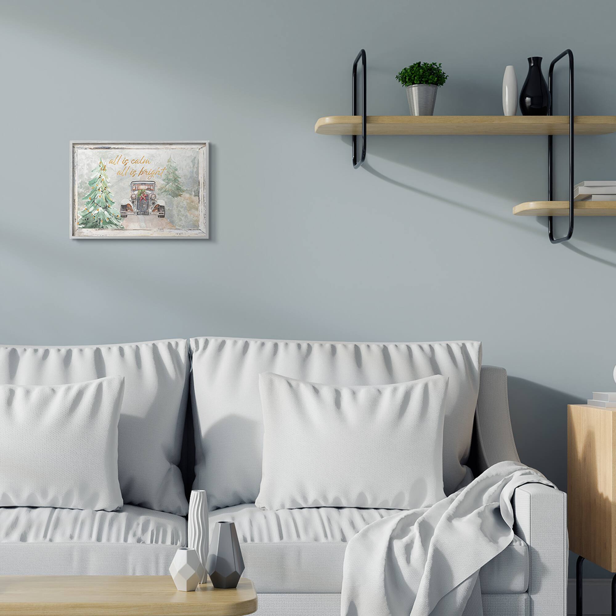 Stupell Industries All Is Calm Phrase Vintage Christmas Country Road Framed Wall Art