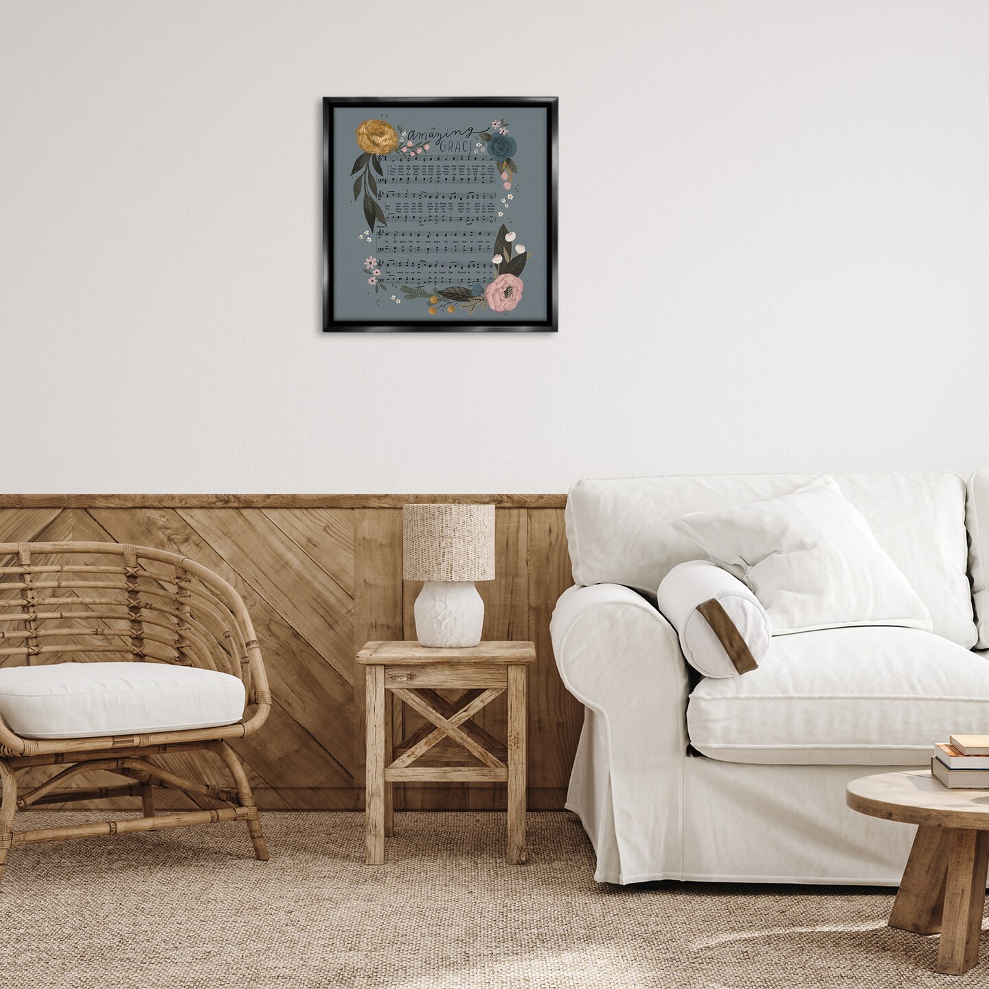 Stupell Industries Amazing Grace Floral Hymn Framed Floater Canvas Wall Art Design by Loni Harris