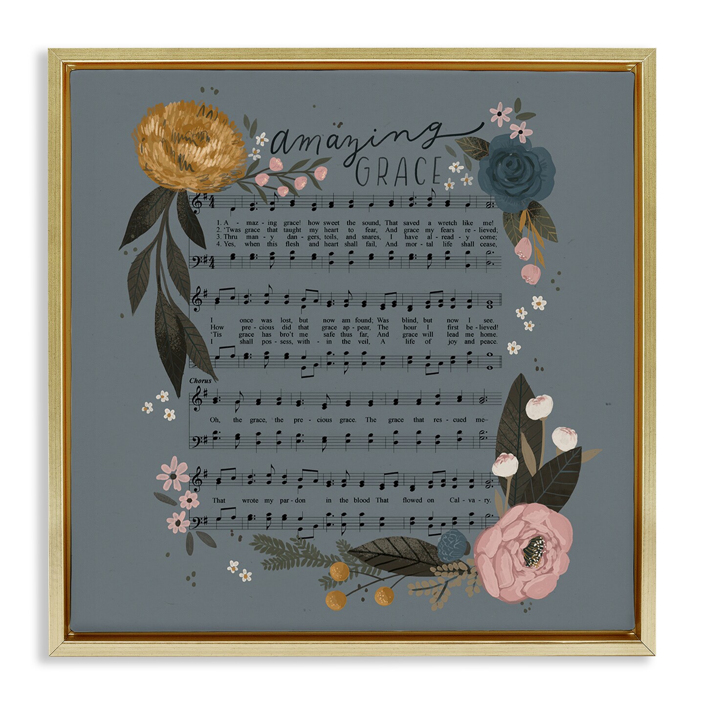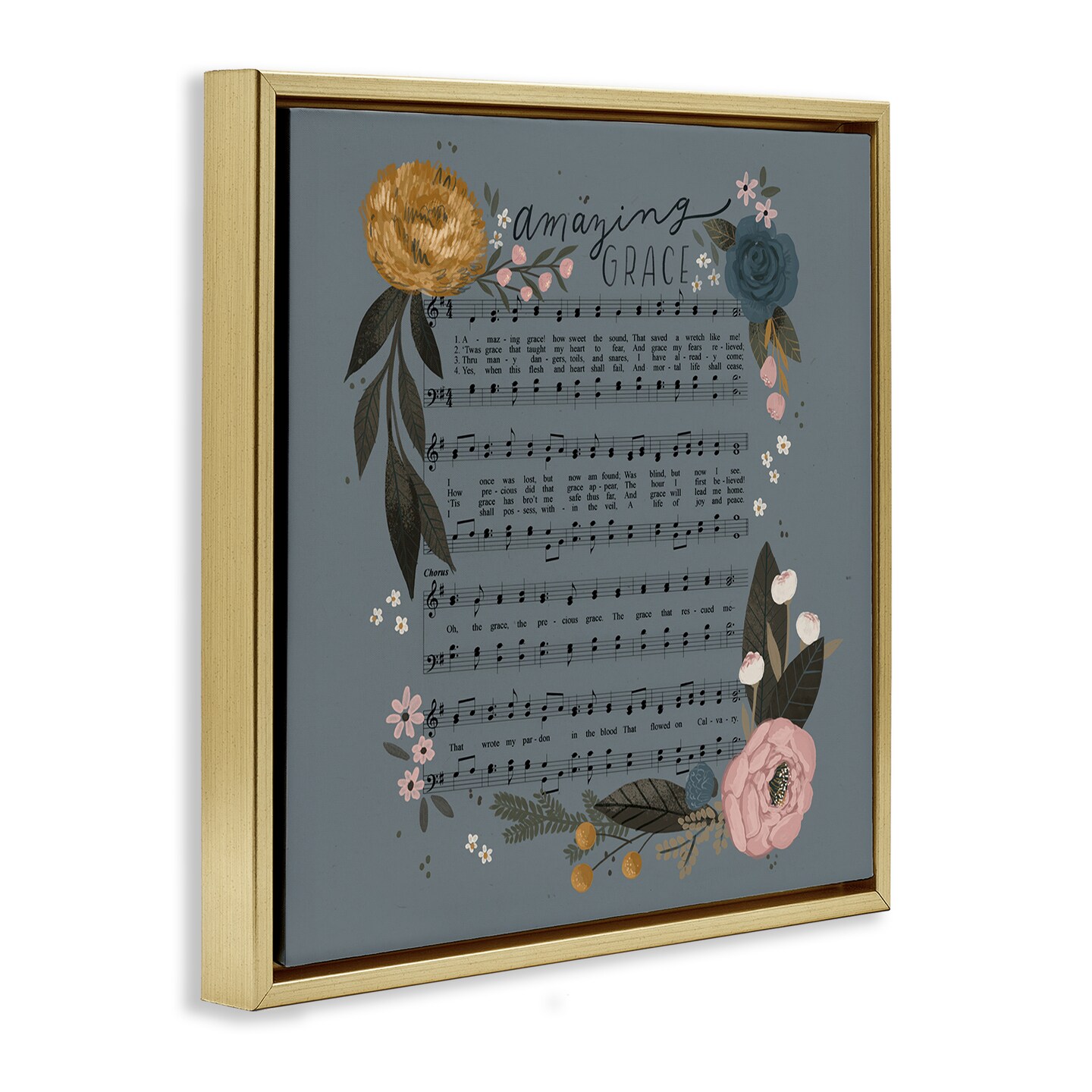 Stupell Industries Amazing Grace Floral Hymn Framed Floater Canvas Wall Art Design by Loni Harris
