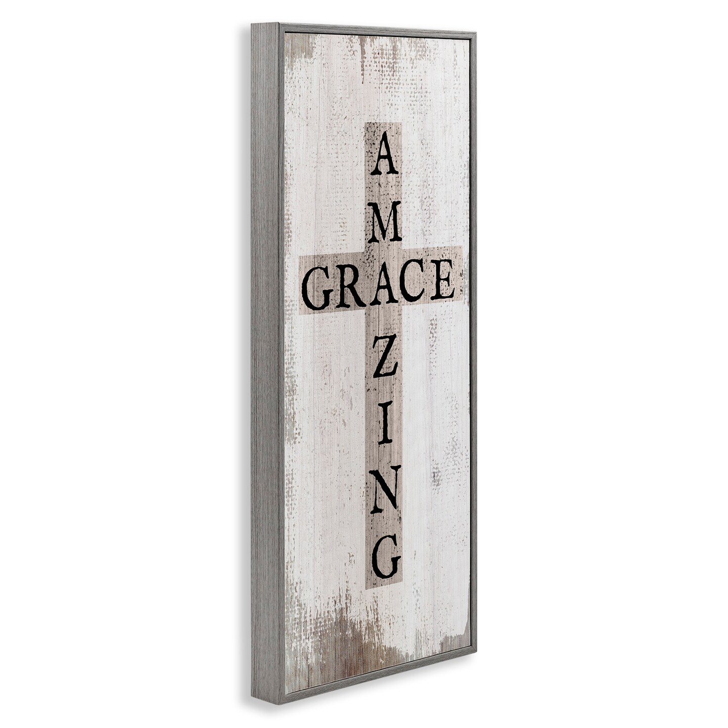 Stupell Industries Amazing Grace Rustic Cross Framed Giclee Art