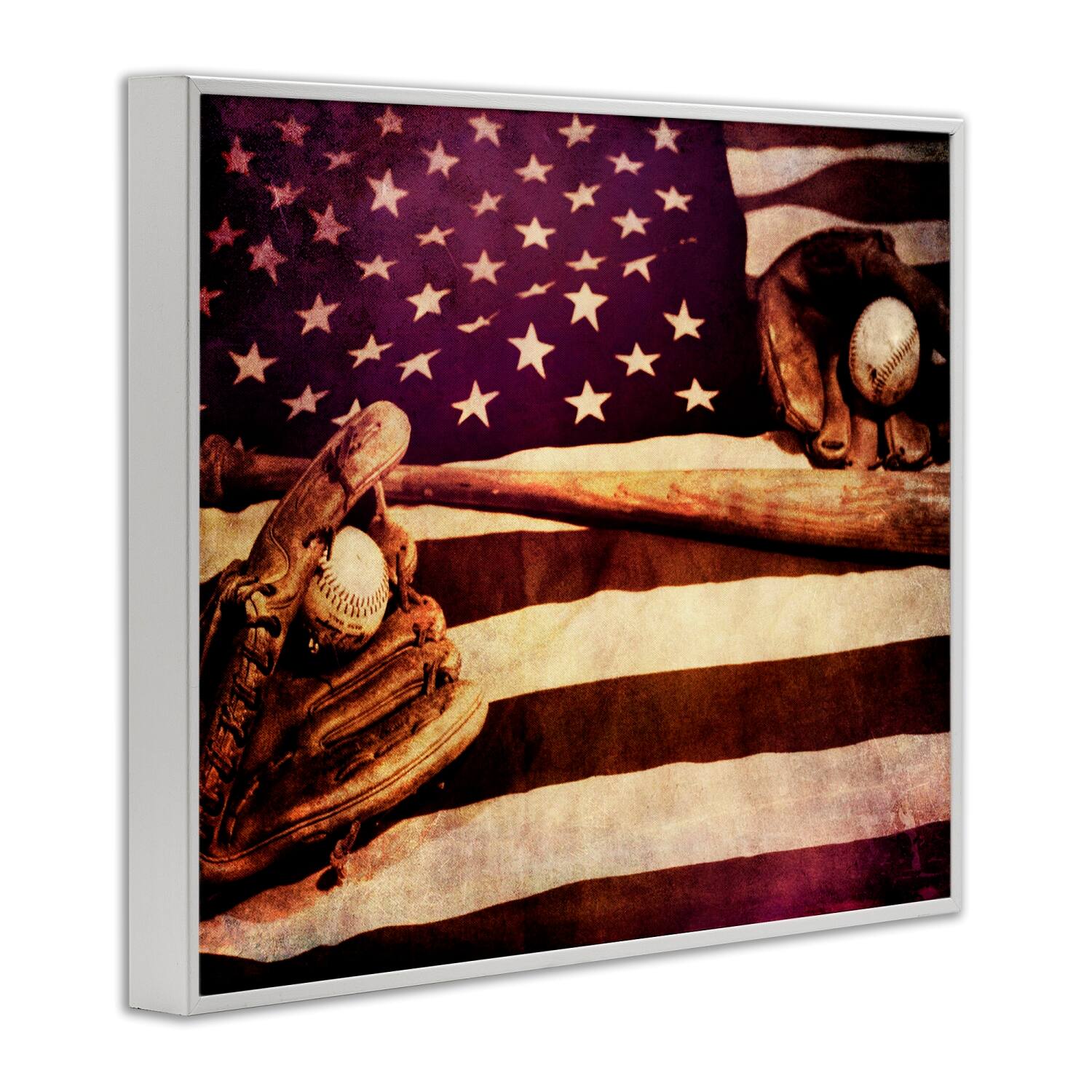 Stupell Industries American Flag Stripes Stars Baseball Mitt Sports Motif Framed Giclee Art