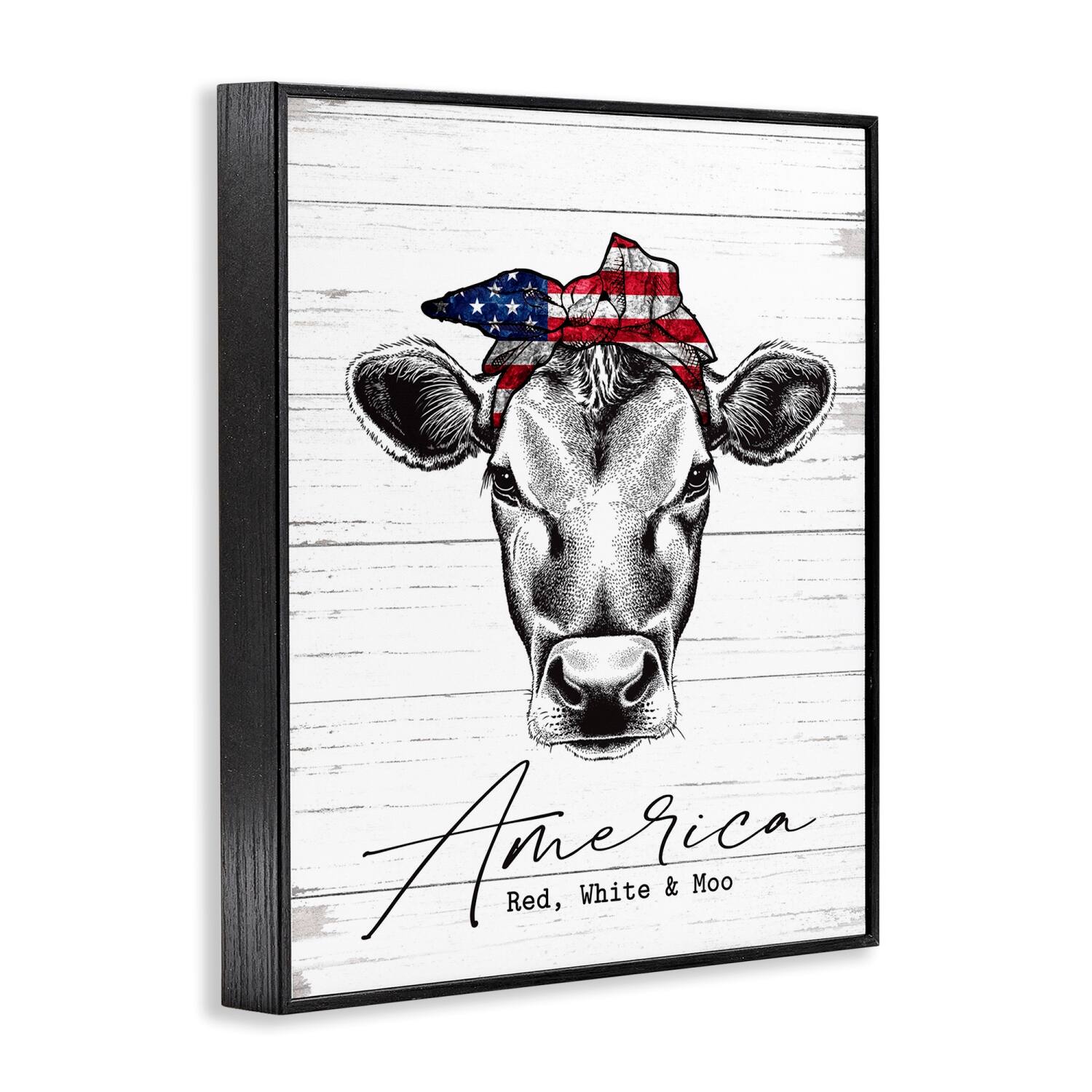 Stupell Industries Americana Cow Red White and Moo Country Farm Quote Framed Giclee Art
