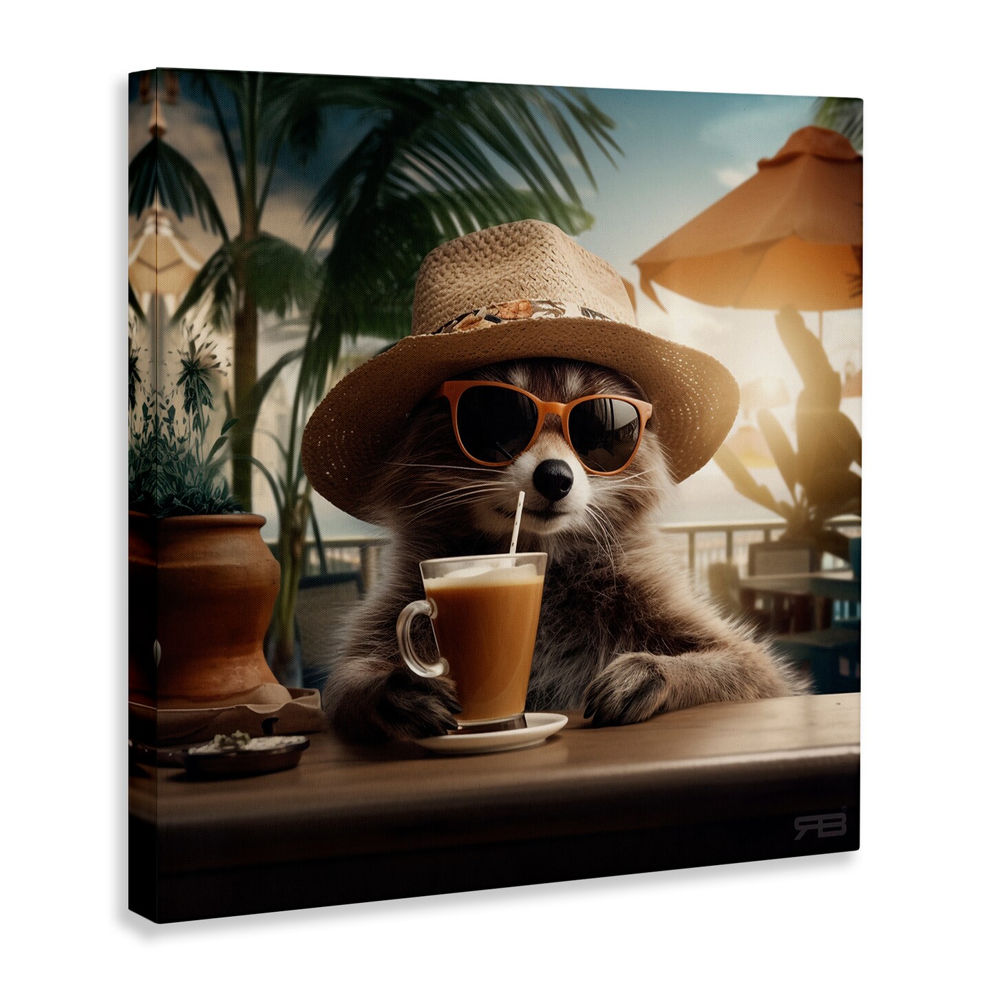 Stupell Industries Animal Sipping Tropical Drink Canvas Wall Art Design by RB