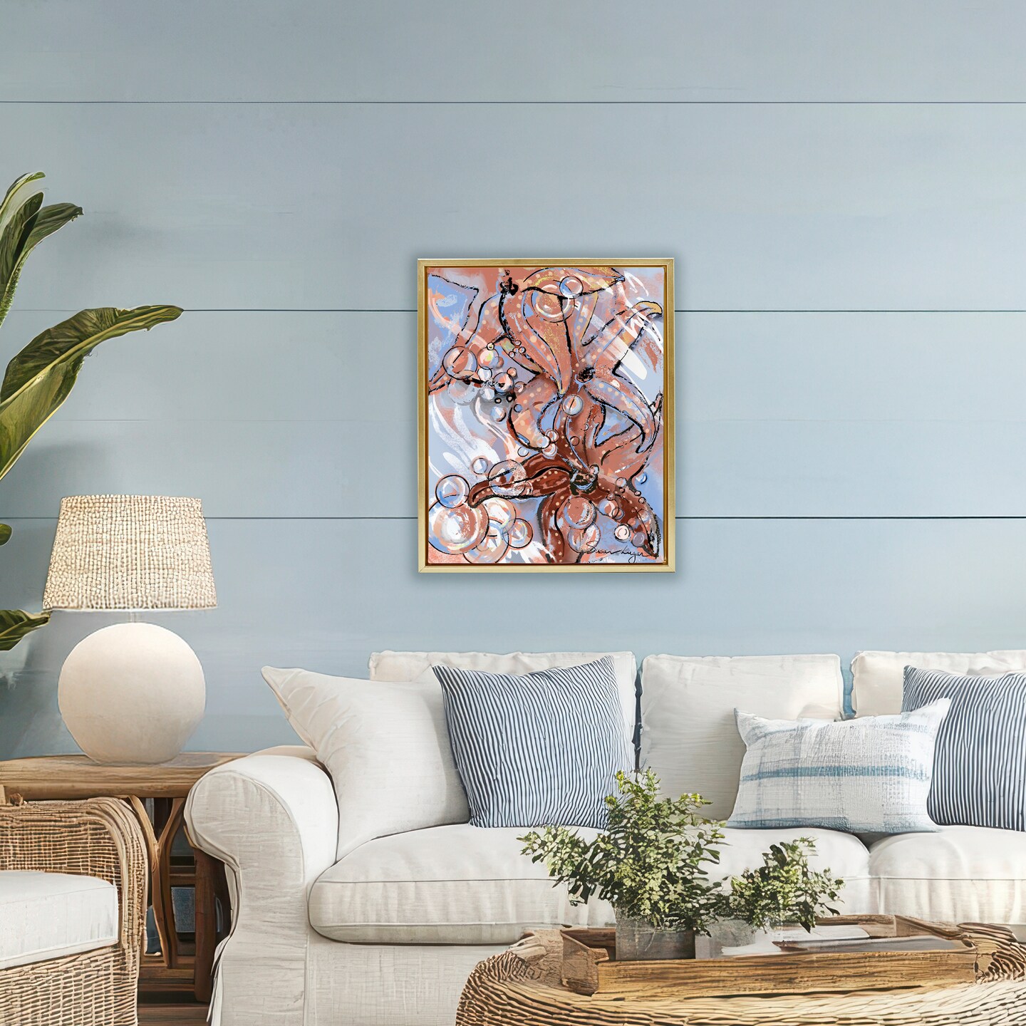 Stupell Industries Aquatic Starfish And Bubbles Floating Frame, design by Susan Lugar
