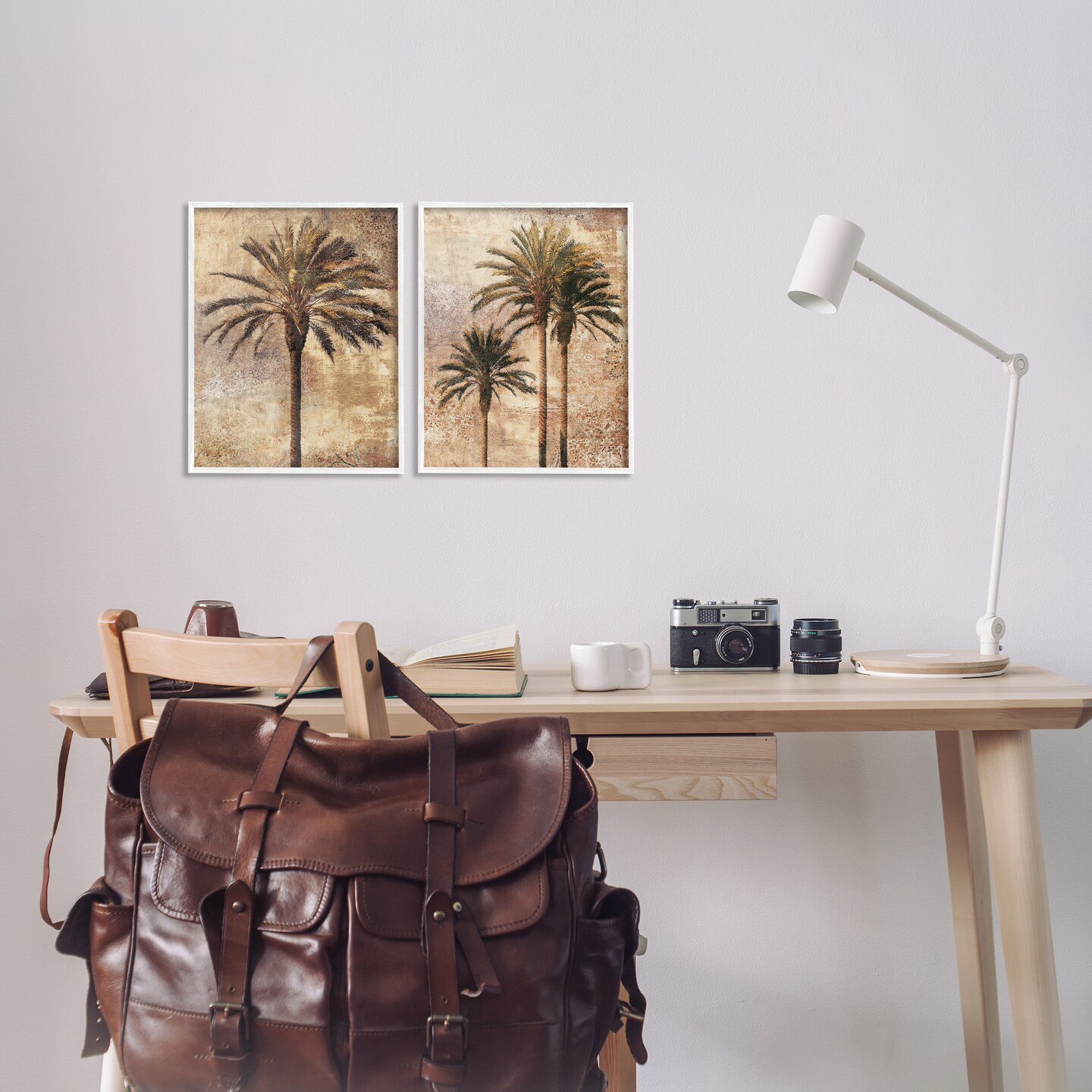 Stupell Industries Arching Palm Leaves 2pc Framed Giclee Wall Art Set Design by John Seba