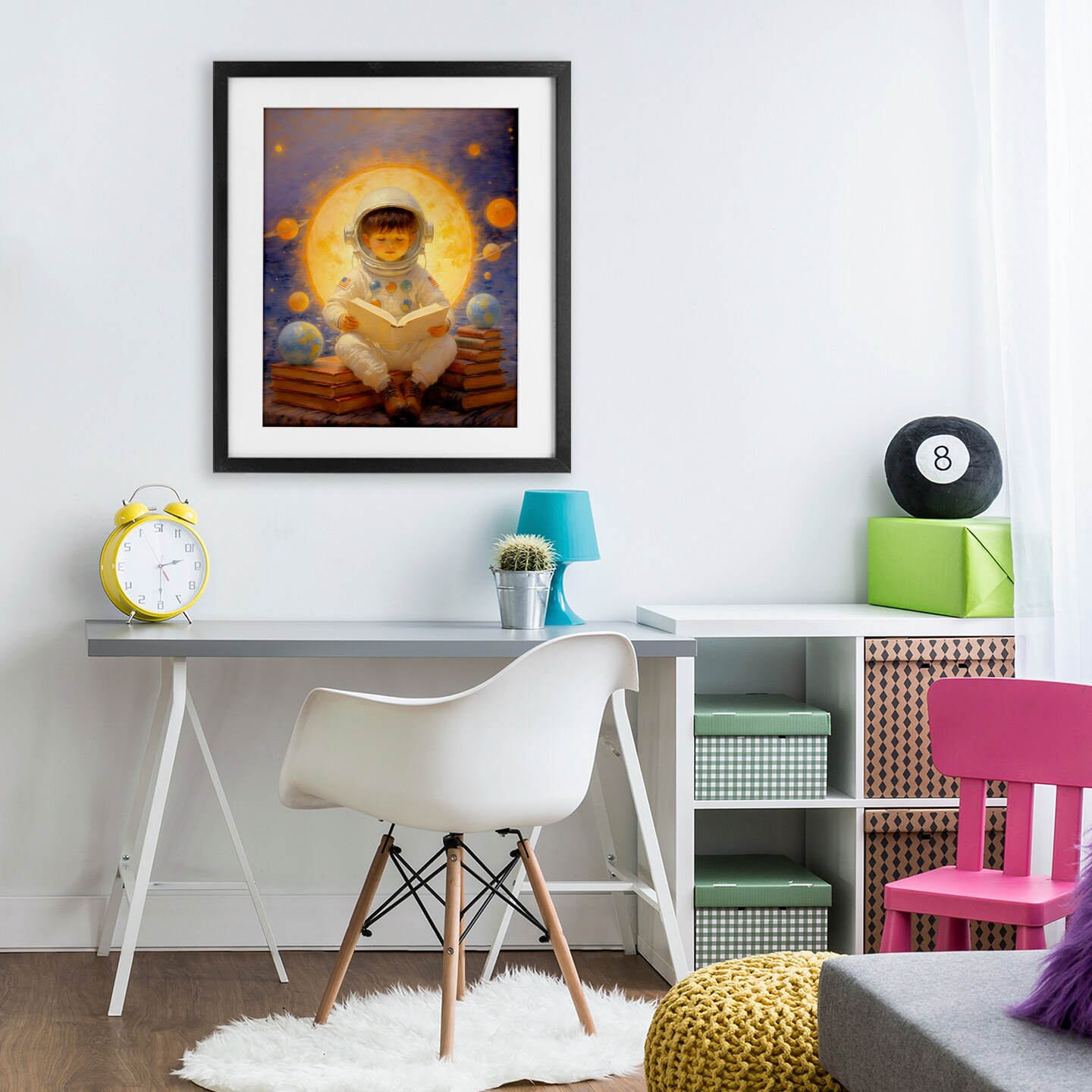 Stupell Industries Astronaut Child Learning Framed Print Under Glass, design by Angie Hawke