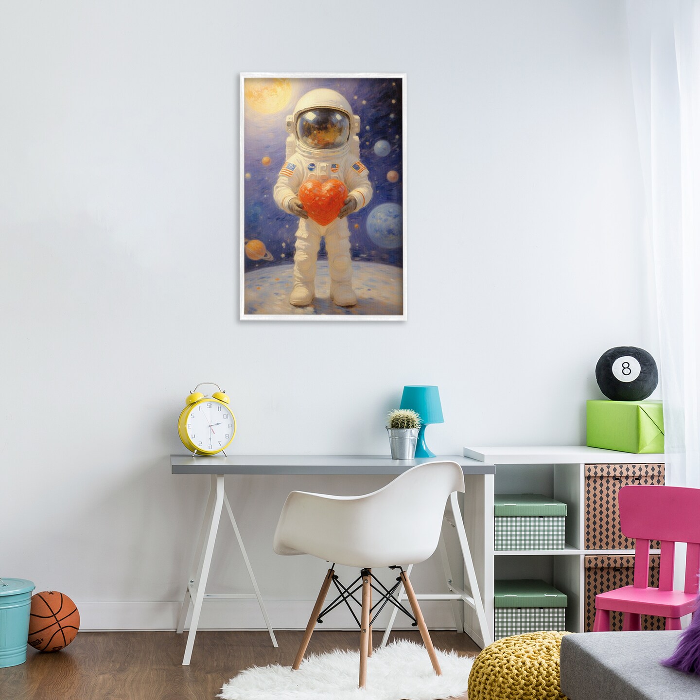 Stupell Industries Astronaut Holding Heart Framed Giclee, design by Angie Hawke