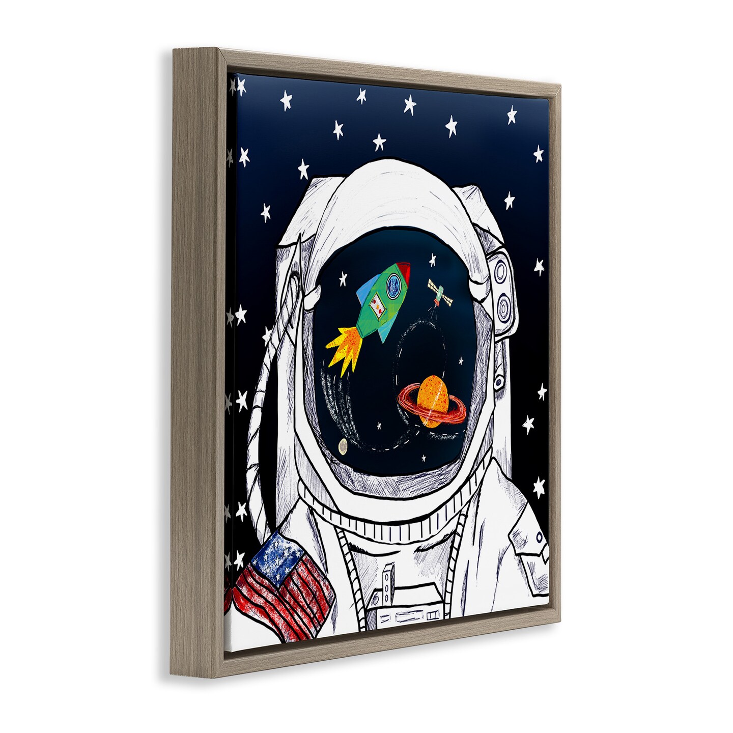 Stupell Industries Astronaut Space Suit Galaxy Framed Floater Canvas Wall Art
