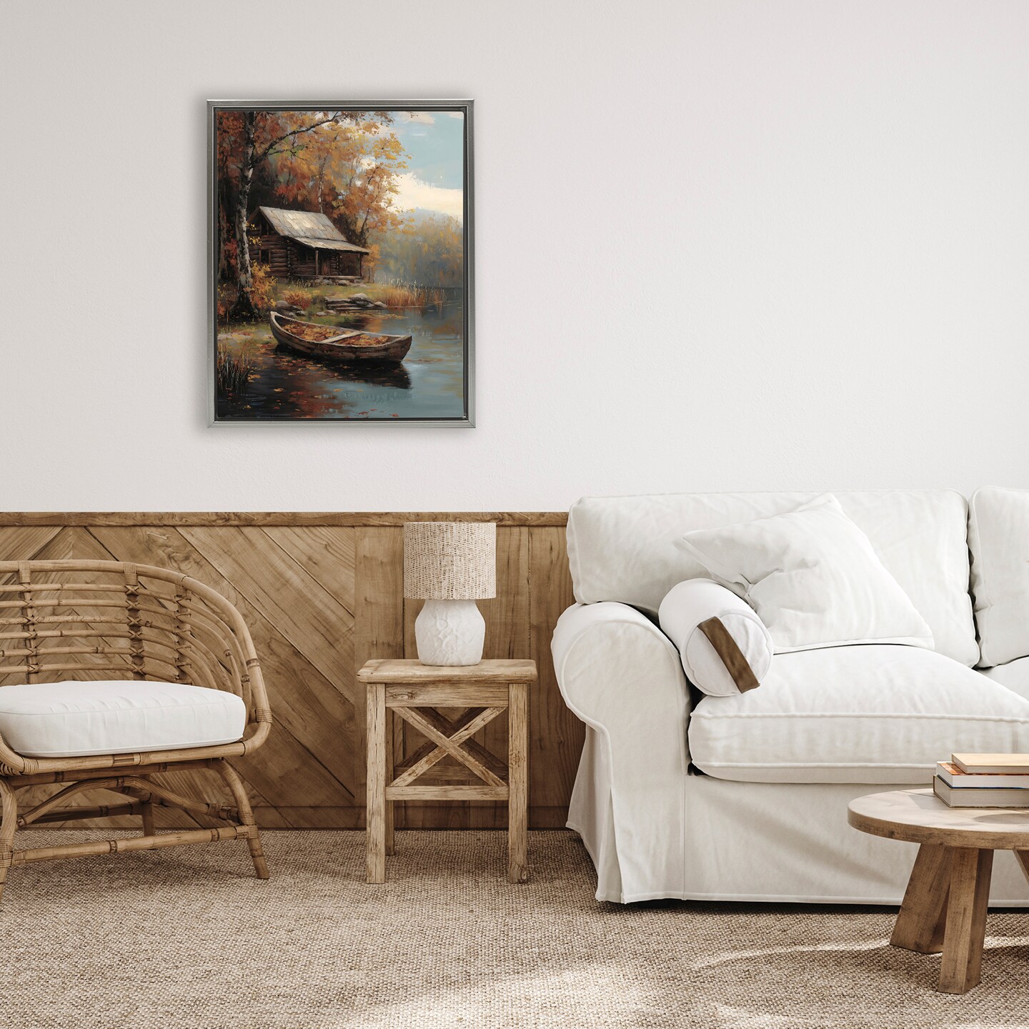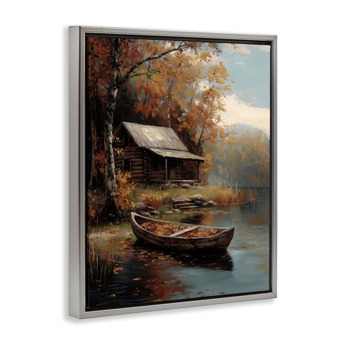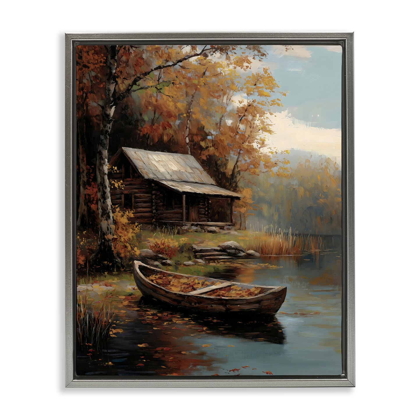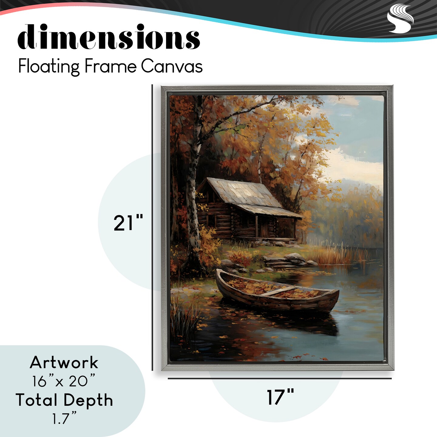 Stupell Industries Autumn Cabin Canoe with Leaves Floating Frame, design by Arlington Prints